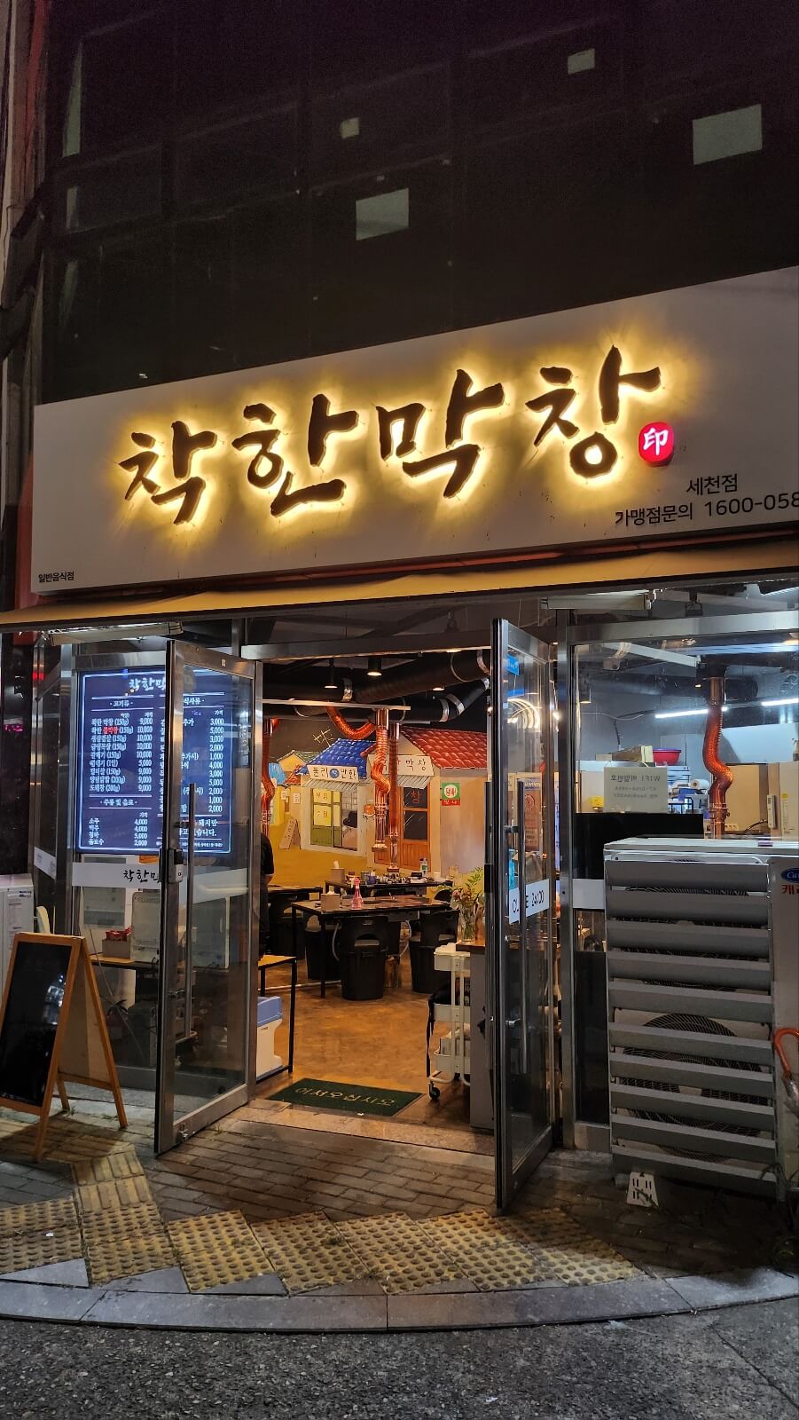 안녕하세요~ 오늘은 다사 세천 막창 맛집을 소개해드리려고 합니다. 막창 좋아하시나요? 일전에 제가 너무 사랑하는 부산막창을 소개해드린 기억이 있는데, 그 후로 막창 맛집 소개는 처음인 것 같습니다. 바로 착한막창인데요! 이것도 프랜차이즈라고 하더라구요? 저는 처음들어보지만 여기 맛있다는 이야길 듣고 방문해 보았습니다. 다사 세천에 또 제가 좋아하는 카페인 트라이톤이 있잖아요. 거기 놀러갔다가 배고파서 저녁 뭐 먹지 고민하다가 여길 오게 되었어요. 다음에도 또 그 코스로 가려구요. 대구 데이트 코스로 수족관 카페 트라이톤과 맛있는 막창집에서 소주한잔 딱 좋을 것 같죠? 지금부터 착한막창이야기 시작하도록 하겠습니다.