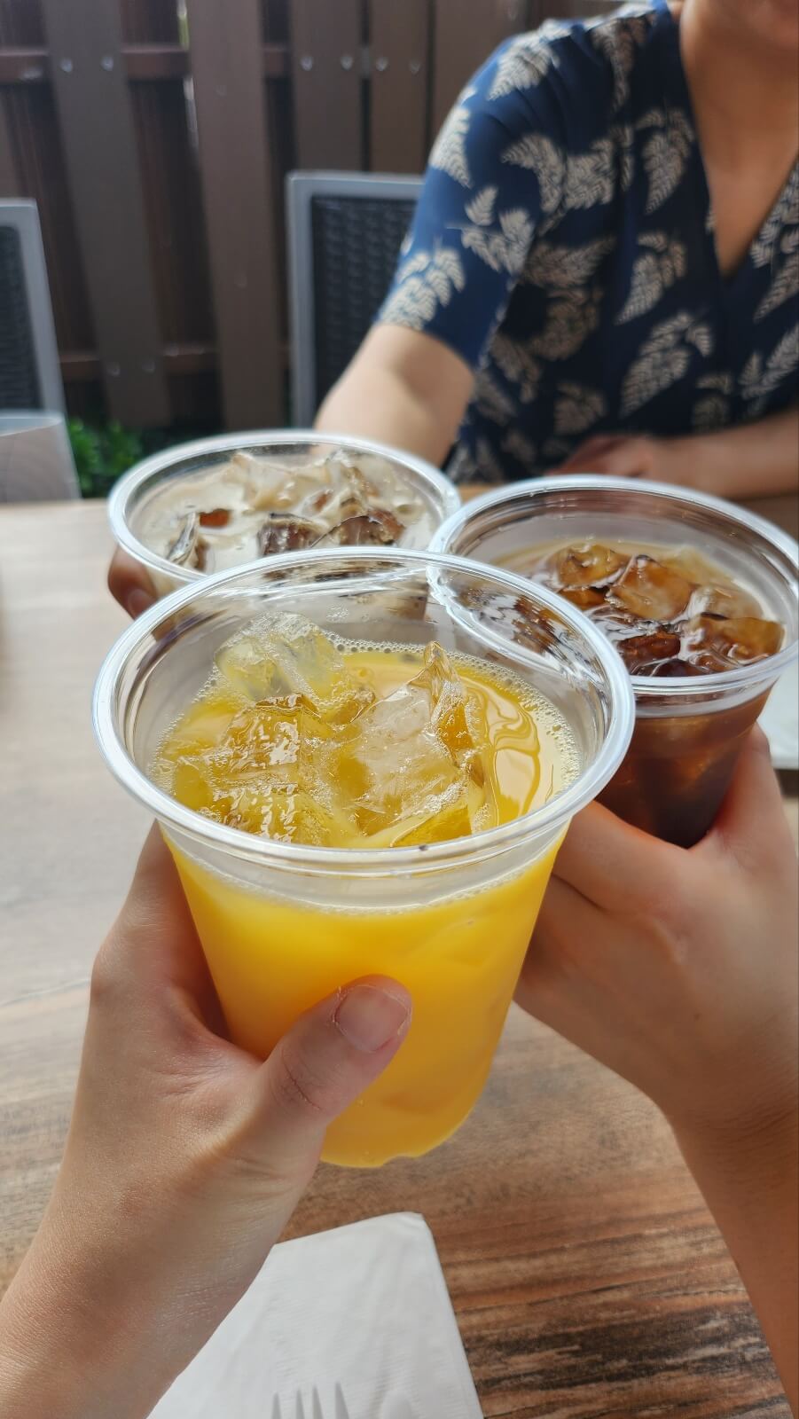 다른 테이블에 많이 올려져있기에 시켜본 오렌지 쥬스, 제로콜라, 아이스아메리카노 각자 다 다른 음료를 시켜 나눠먹었는데 오렌지쥬스 참 맛있었습니다. 그리고 역시 아점엔 아아지! 느끼한 거 먹곤 콜라지! 세개 다 아주 만족스러운 효용을 줘서 더욱 좋았답니다. 우리 제법 잘한 거 같아! 음료로 짠을 하고 난 뒤 오늘 하루도 아자아자를 외치며 기다리다 음식이 나왔습니다. 에그베네딕트 포그와 로꼬모꼬! 로꼬모꼬 사진으로 보니 또 생각나네요... 괌에서 저거 한번밖에 못 먹었어... 나 너무 슬퍼... 느끼한 음식을 좋아하는 저임에도 끝에는 조금 느끼했지만 그래도 꾸덕한 크림소스며 함박이며 어느 것 하나 맛있지 않은 구석이 없었어요. 사실 에그베네딕트는 큰 기대가 없었는데 로꼬모꼬와 조합이 꽤나 괜찮았답니다.