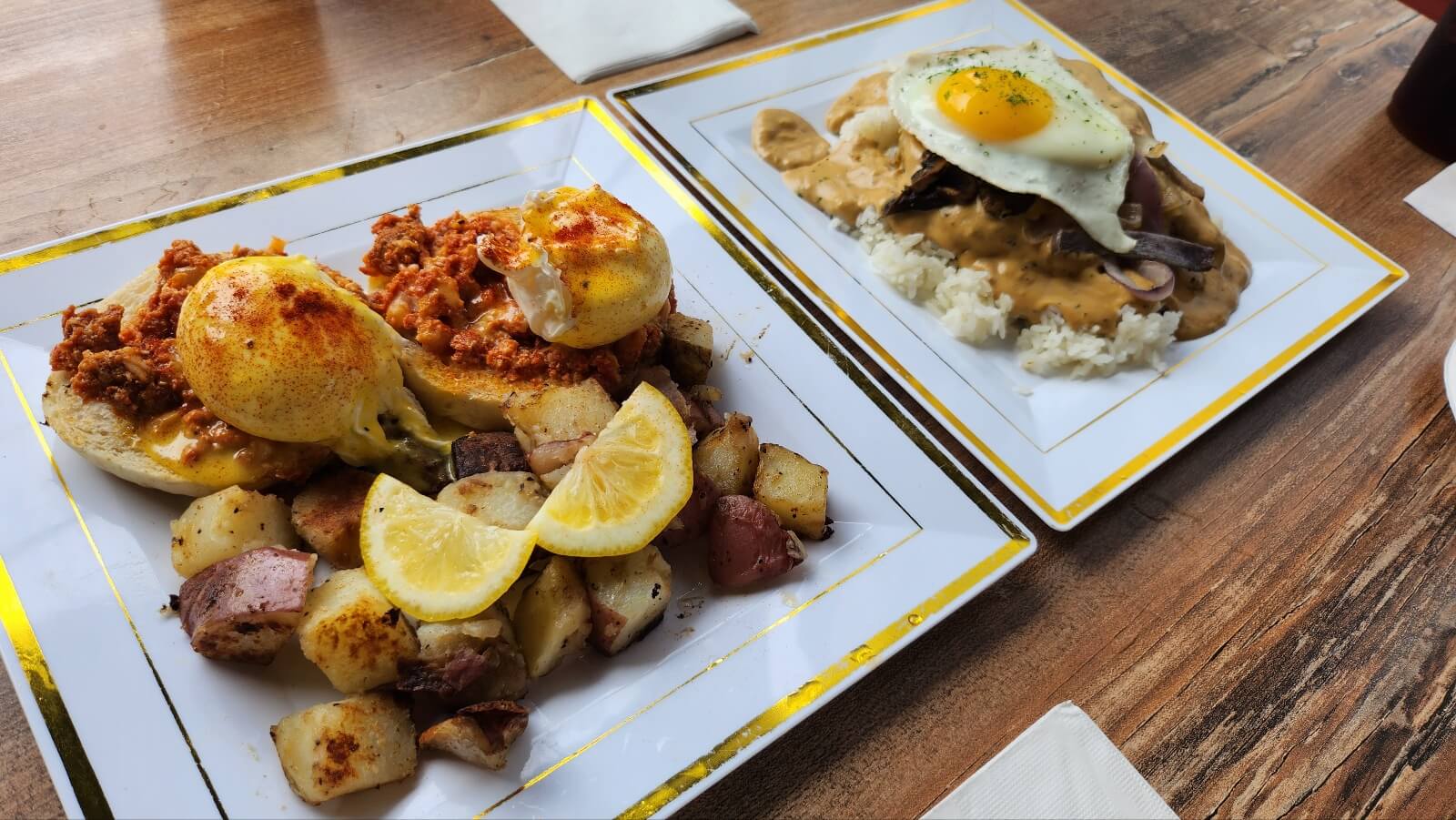 리틀피카스는 내부 자리도 있지만 야외 자리가 더 인기가 많았어요. 식사 중 비가 쏟아졌는데 그 또한 너무 낭만적이었답니다. 저희도 운 좋게 외부에 자리를 잡아 착석했어요. 내부는 이때만 해도 텅텅비었는데 저희가 앉은 뒤로 점심 식사하러 온 인파로 인해 내외부가 모두 만석이라 웨이팅이 발생했답니다. 운이 너무 좋았죠! 괌 로꼬모꼬 맛집 리틀 피카스 메뉴 공유해드립니다. 저희는 로꼬모꼬와 베네딕트에그를 주문했어요. 에그베네딕트는 포크와 연어 두 가지였는데 저희는 포크로 선택했답니다. 괌은 음식 값이 나가는만큼 양이 제법 많은 편이라 우선 조금만 시킨 후 추가 주문을 하시는 게 좋을 것 같아요. 저희는 가볍게 먹을 거라 셋이서 두개만 했는데도 제법 든든하게 먹었어요.