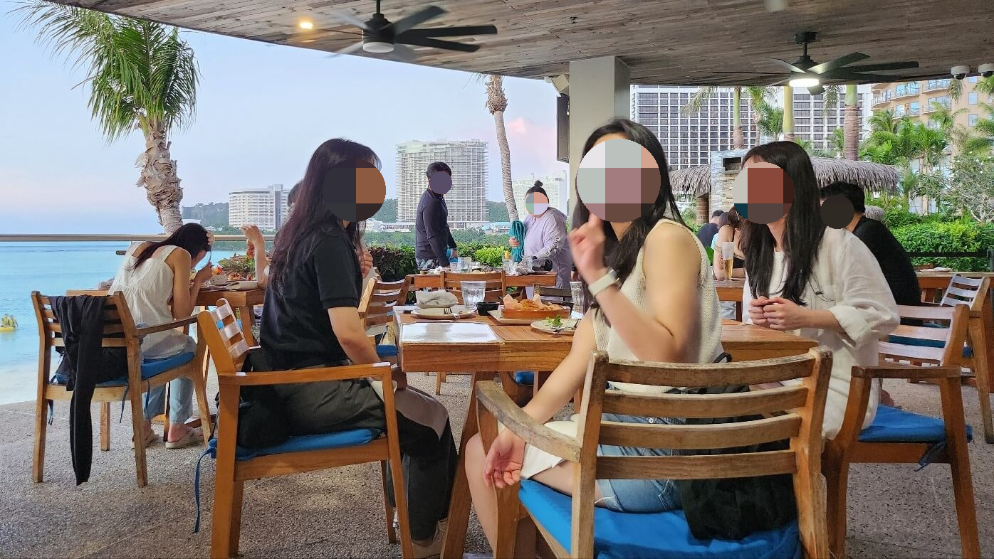 저희는 반 이상 무계획 여행이었기 때문에 현지에서 놀다가 저녁 뭐 먹지 고민하다 괌 오션뷰로 정했고, 검색하던 중 타시그릴을 알게 되었어요. 좀 이른 시간부터 방문했던 터라 그런지 예약없이 그냥 방문했음에도 불구하고 테이블을 받을 수 있어 안도의 한숨을 내쉬었답니다. 투몬비치를 산책하다보면 타시그릴이 나와요. 투몬비치 있을 땐 몰랐는데 사진보니 더 좋았던 거 있죠... 이래서 당연하게 생각하면 안됩니다. 맑은 물과 예쁜 물고기 잊지 못해... 저희는 스노쿨링 장비를 사서 투몬비치에서 스노쿨링도 했는데 액티비티보다 그게 더 재밌게 느껴질 정도로 아주 즐거운 경험이었답니다.