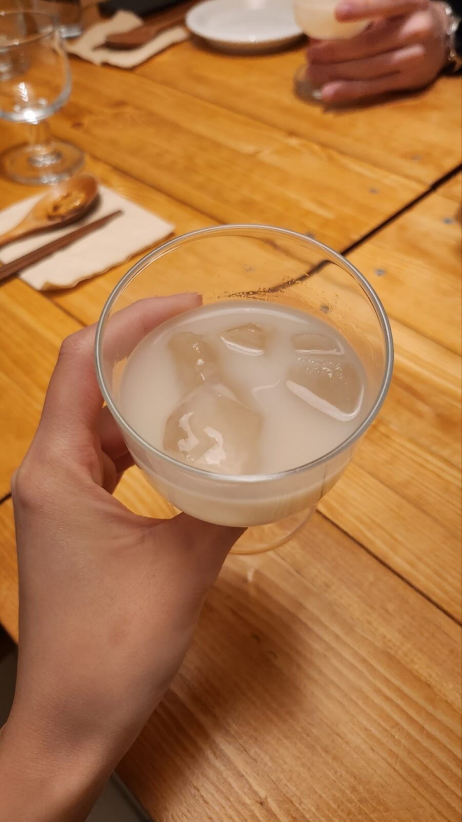 드디어 나온 레이지댄싱서클! 캐릭터가 신명나게 웨이브를하고 있기에 시원하게 흔들었어요. 일전 복순도가를 흔들어 한시간동안 탄산뺀 기억이 나 혹시나 봤더니 자연 탄산이 있으니 흔들지 말라네요. 하하하 저희는 해당 막걸리를 킵한 후 지평생을 시켰습니다. 얼음에 타 마시면 맛있는 레이지댄싱서클이었는지 얼음컵도 주셨지만 저희는 지평생을 따라 마시며 진정되길 기다리고 있었어요. 막걸리가 진정된 후 얼음을 리필해서 마셔보았는데 음 어른의 맛이었답니다. 제 입에는 쓰고 도수도 세고... 지평생 최고!