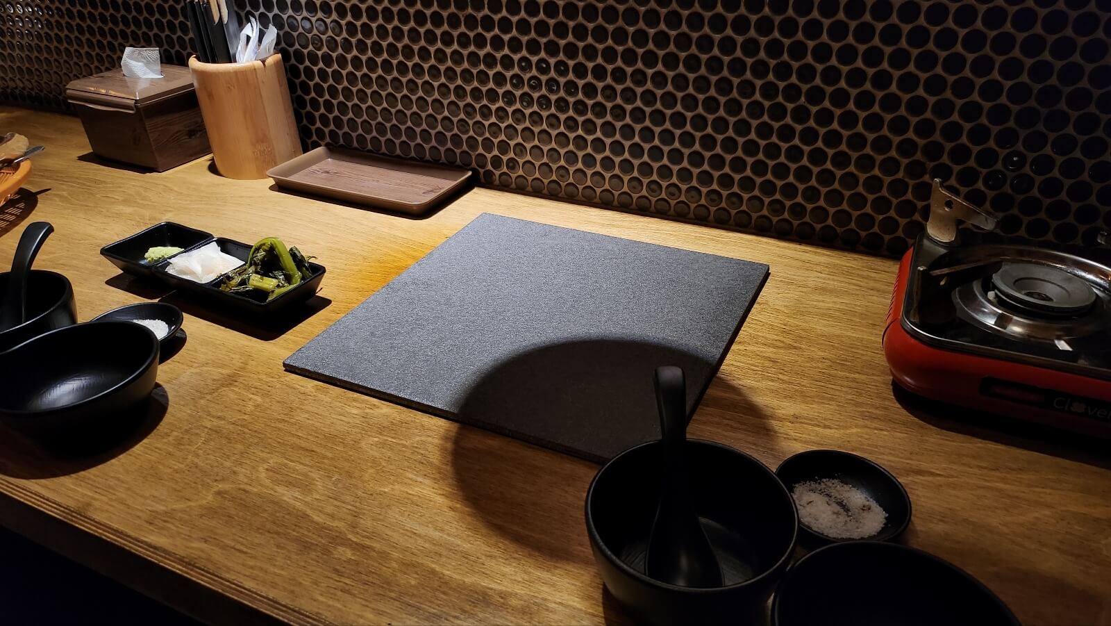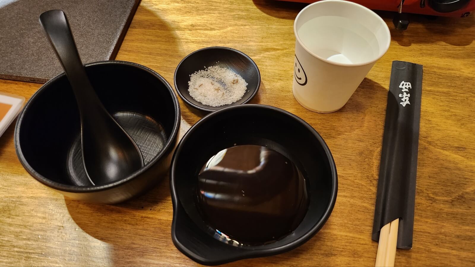 서부산 신라스테이 맛집 히츠지야 명지점의 메뉴입니다. 정말 다양한 메뉴와 세트, 주종이 있죠? 저희는 낮에 음식을 너무 많이 먹은 터라 저녁에 배가 그리 고프지 않았어요. 직원 분이 주로 2인이서 오면 징기스칸 SET를 많이 찾는다고 권해주셨지만 배가 고프지 않아 훗카이도 SET로 주문했어요. 총 고기양은 300g으로 양갈비와 럼프살 화로구이 그리고 스키야키나베까지 나오는 구성이었어요. 주종은 나의 사랑 소주로 했답니다. 주문을 마친 후 상차림을 기다려요. 앞접시와 소금 소스를 주시는데 나중에 저 소스에 레몬을 탁 넣으면 더욱 상큼한 소스를 만들 수 있답니다.