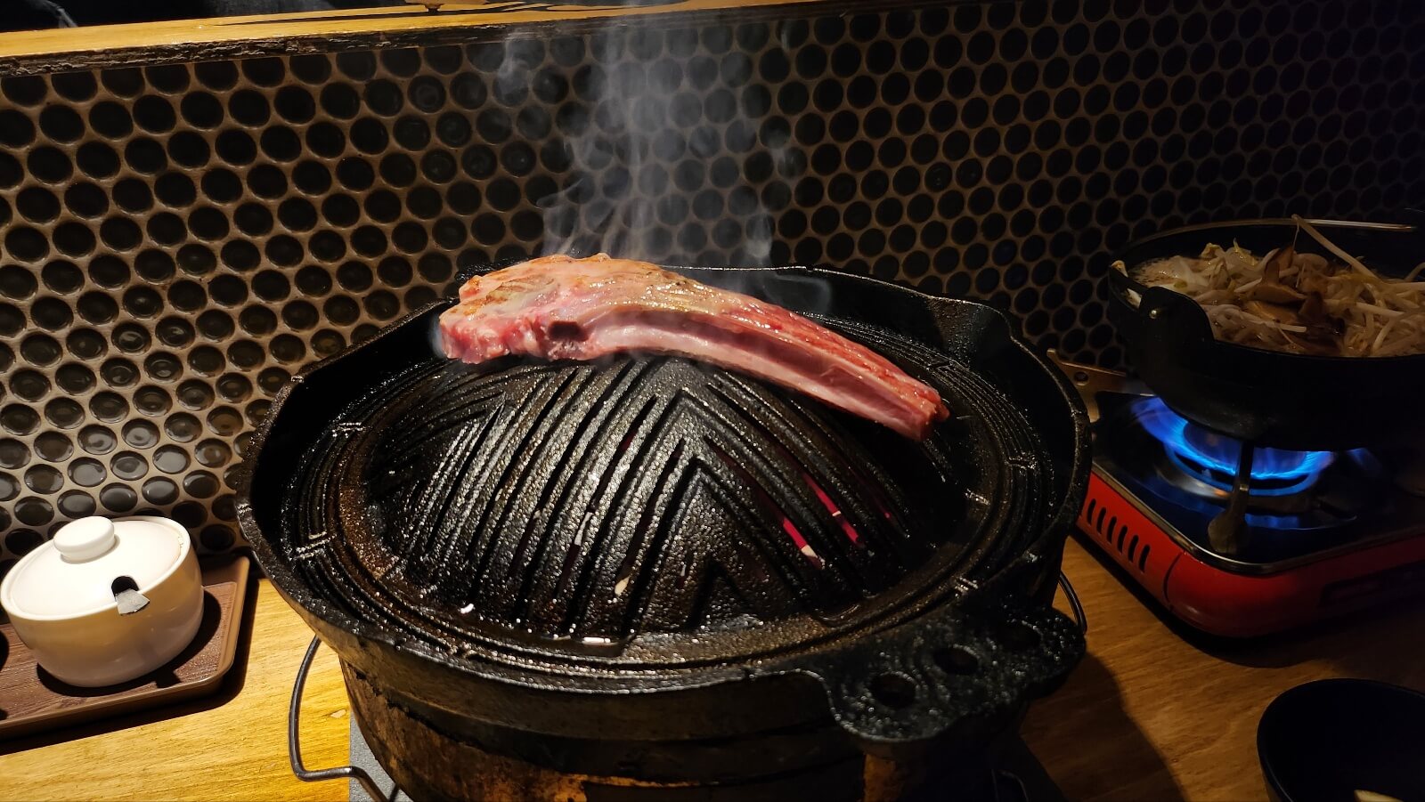 가게 구경을 좀 하고 있다보니 드디어 화로와 고기가 나왔어요. 캬 맛 없을 수 없는 비주얼이죠? 양고기 기름으로 불판에 기름칠을 한 후 토마호크 양갈비가 올라갔어요. 직접 다 구워주셔서 탈 걱정없이 구경만 해주면 된답니다. 화로구이는 맛에 한번 감성에 한번 두번 죽죠. 다시 봐도 너무너무 맛있었던 기억이 새록새록 떠오르네요. 사실 이 날 전 부산에서 뮤지컬 배우 최재림님을 봤답니다. 네 TMI 맞습니다. 좋은 기억과 맛있는 음식으로 아주 행복했네요.
