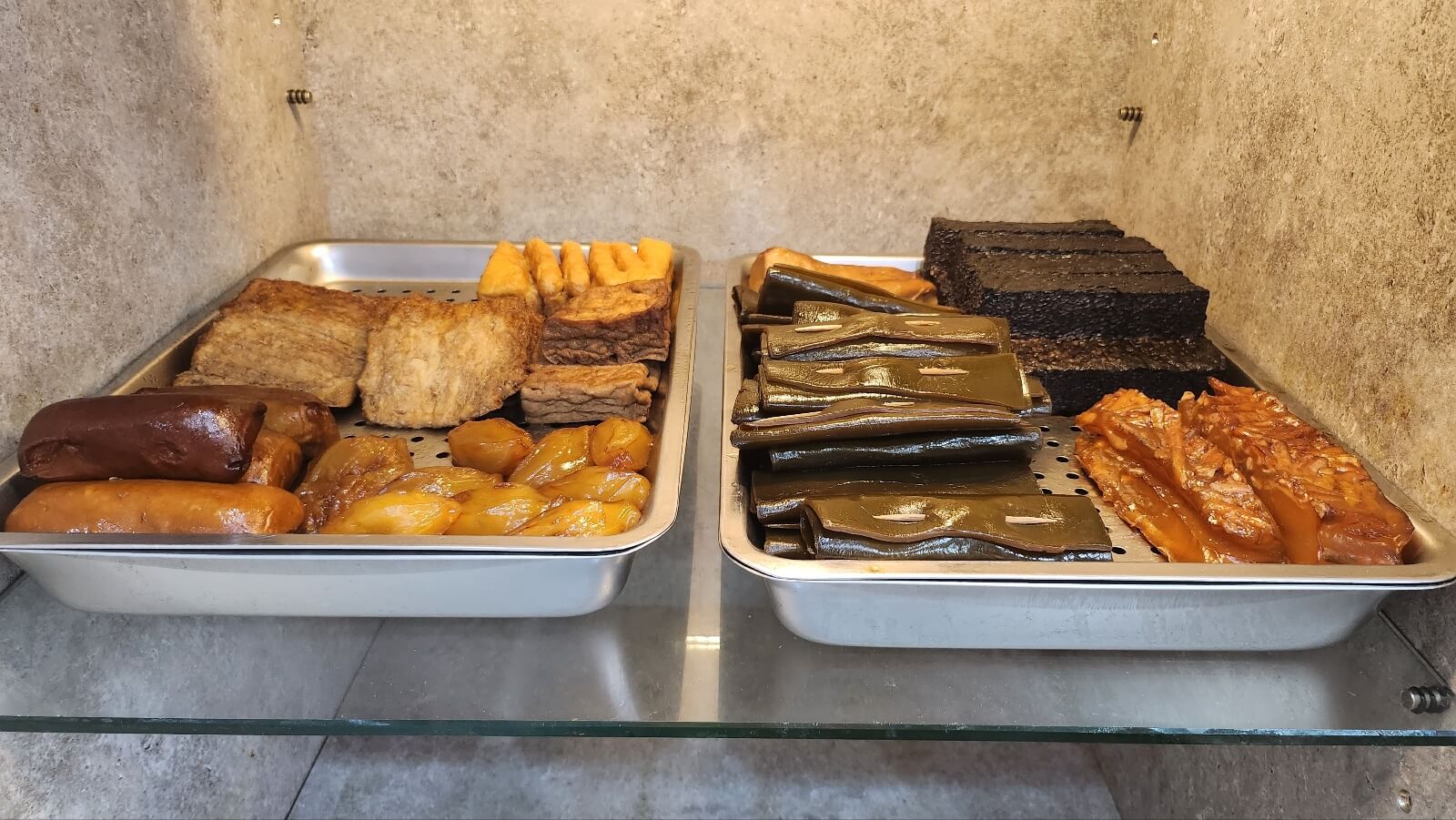 진지하게 오로지 현지인들을 위한 맛집이라고 느껴지는 게 다른 언어는 하나도 찾아볼 수 없었어요. 만국공용어인 영어 조차 없어 저희는 파파고의 힘을 빌릴 수 밖에 없었답니다. 뭐가 나올 지 몰라 더욱 재밌었던 신나는 음식 셀렉 시간이었답니다. 가게 내부엔 아마 토핑으로 보이는데 다양한 음식이 있었고, 가격표가 있었어요. 당연히 뭔지 모르는 저희는 저건 그냥 구경만 하였답니다. 식기류가 보이길래 식기류만 셀프로 세팅하기 위해 챙겨왔어요.