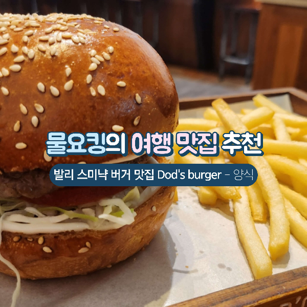 안녕하세요~ 오늘은 발리 여행 시리즈 마지막을 장식할 스미냑 맛집 소개입니다! 블로그에 남기면서 다시 새록새록 생각이 나네요. 너무 즐거웠던 여행이었죠~ 발리의 마지막 저녁으로 선택했던 발리 스미냑 수제 버거 맛집 Dod's burger 입니다! 햄버거 덕후인 저는 발리에 가서 두끼를 버거를 먹었죠 ㅎㅎ 그런 햄버거 덕후인 저의 입맛에 아주 딱 맞았던 맛집이라 스미냑 가시는 분들께서도 꼭 방문해보시길 추천드립니다. 사실 버거먹고 만두 맛집 찾아가서 만두 포장해서 숙소가서 또 야식을 즐긴 건 비밀입니다! 그치만 너무 많이 걸은 날이기 때문에 허기가 질 수 밖에 없었어요. 하하하
