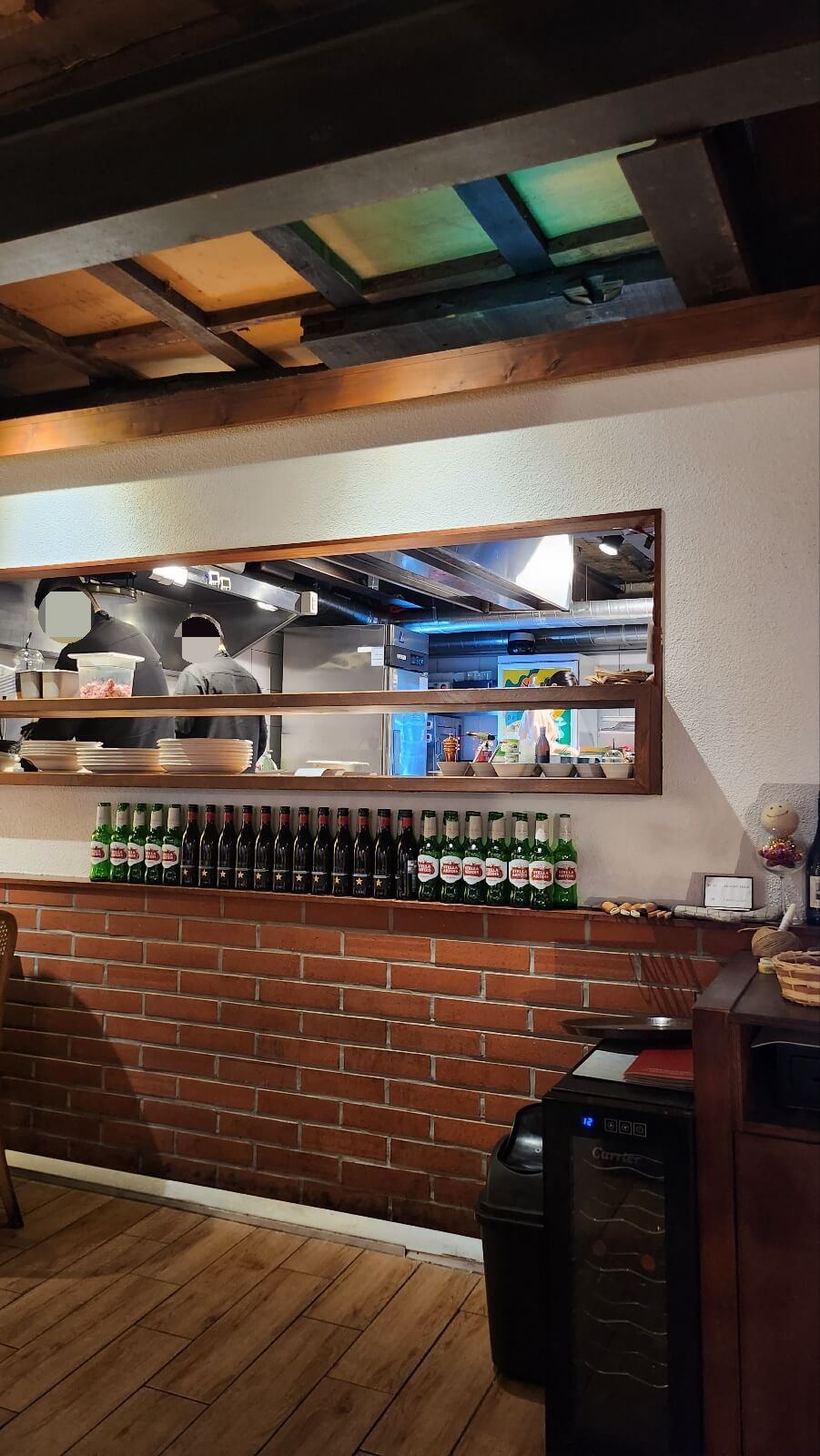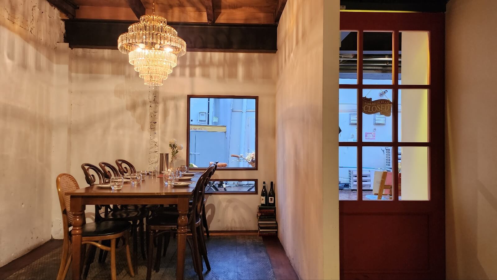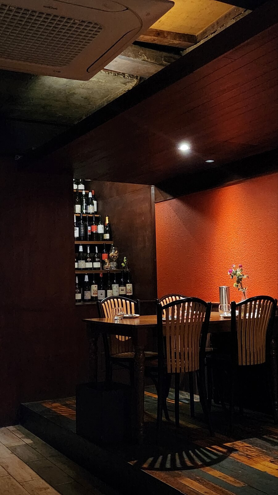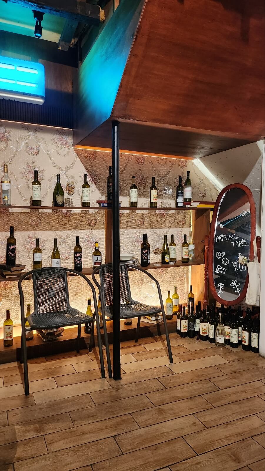 가구도 워목의 빈티지한 분위기를 풍기는 것들이 많고 와인병으로 분위기를 한층 살려주었답니다. 샹들리에가 걸려있는 동성로 맛집이 있다?! 네 바로 페어링테이블인데요, 정사각형의 창문 쪽에 있는 단체석 쪽에 샹들리에가 있는데 단체로 가 본 적은 없어서 한번도 앉아본 적은 없답니다. 소수로 저기가면 스포트라이트가 쏟아질 것 같아서 저는 좀 부담스럽네요,,,하하하!