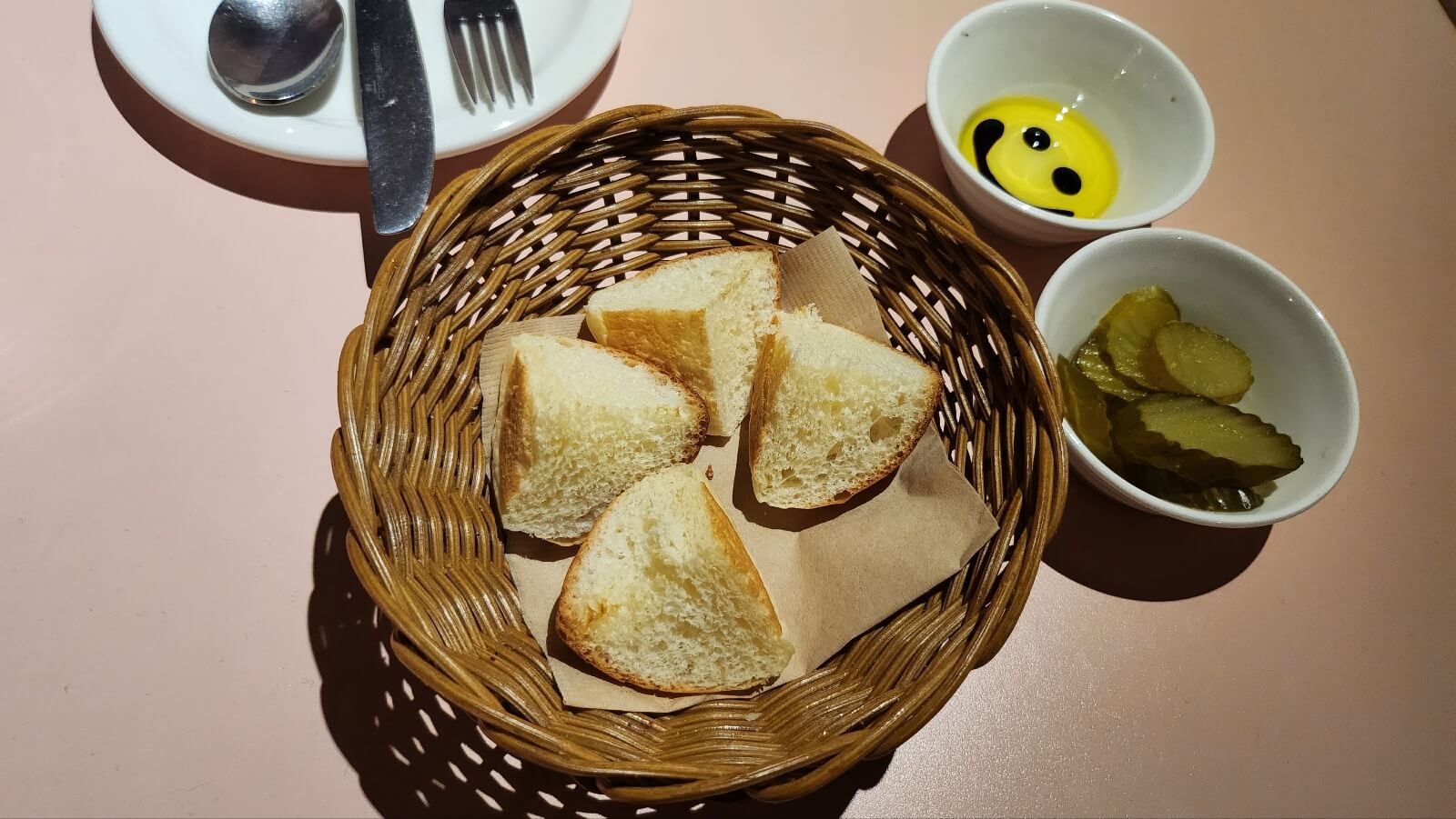 가게 구경을 마친 후 페어링테이블 메뉴를 탐색해 보았어요. 사실 저희는 정해져 있었답니다. 라자냐와 뇨끼! 두 메뉴를 주문했어요. 대구 동성로 뇨끼 맛집 찾으시는 분들 꼭 페어링테이블 가보세요! 진짜 맛있답니다 ㅠㅜ 뇨끼 말고도 다른 메뉴들도 맛있는데 저는 뇨끼 덕후라 뇨끼를 제일 추천드립니다! 음식 주문 후 식전빵을 가져다 주세요. 발사믹 올리브유는 무조건 맛있죠! 빵을 콕콕찍어 먹으면서 친구와 이야기를 나누었어요.