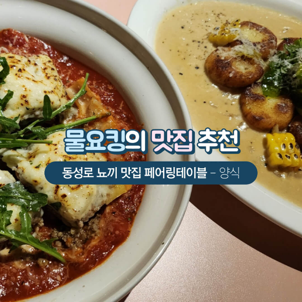 안녕하세요~ 오늘은 대구 동성로 맛집을 소개해드리려고 합니다. 한참 전에 준비했던 포스팅인데 이걸 이제야 쓰네요... 게으름이 철철 넘쳐버립니다..하하 여기는 제가 정말 좋아하는 곳인데요! 뇨끼 좋아하시나요? 저는 다이닝 슬로우 라이프에서 처음 뇨끼를 맛 보고 뇨끼에 푹 빠져버린 사람이랍니다. 그러던 중 검색을 통해 동성로에도 뇨끼를 파는 곳이 있다는 걸 알게 되었죠. 거기에 라자냐 페어링까지 가능한 곳이라는 점!! 동성로에서 약속이 있는 날이면 자주 방문하게 되는 대구 동성로 양식 맛집 페어링테이블 이야기 시작하도록 하겠습니다.
