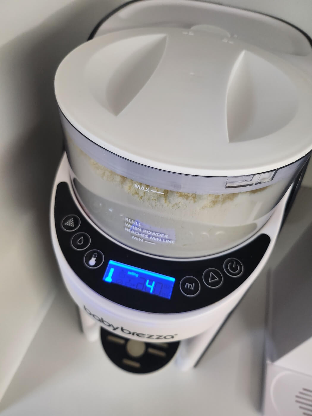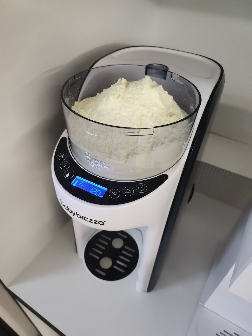 다행히 저희 집에는 브레짜 이모님이 있어서 브레짜에 부어서 써주고 있어요. 기존에 부어놨던 분유가 떨어져가기에 그 위로 새로 오픈한 힙 프레 분유를 넣어주었어요. 브레짜에 대해서도 의견이 많이 갈리던데 저는 아주 잘 쓰고 있답니다. 브레짜 세척이 귀찮다고들 하는데 저는 생각보다 할만했어요. 브레짜 세척은 물통에 식초 한컵과 물을 맥스까지 넣어준 후 왼쪽 물방울 버튼을 눌러 물을 다 빼준 후 4시간 뒤에 다시 물을 넣어 물방울 버튼으로 물을 빼주면 된답니다. 오른쪽 중간 시작 버튼은 분유까지 함께 나오는 버튼이니 꼭 왼쪽 중간 물방울 버튼을 눌러주셔야해요. 브레짜 청소할 때 분유가 들어가는 저 통도 다 조립이 되어있어야 청소가 가능해서 저는 분유 우선 다 뺀 후 다시 뚜껑 덮어 식초물로 청소 후 분유통을 빼서 세척하고 4시간 뒤에 조립한 후 맹물로 다시 세척해준 후 사용하고 있어요. 그렇게 하면 생각보다 세척이 그리 귀찮지는 않더라구요?!