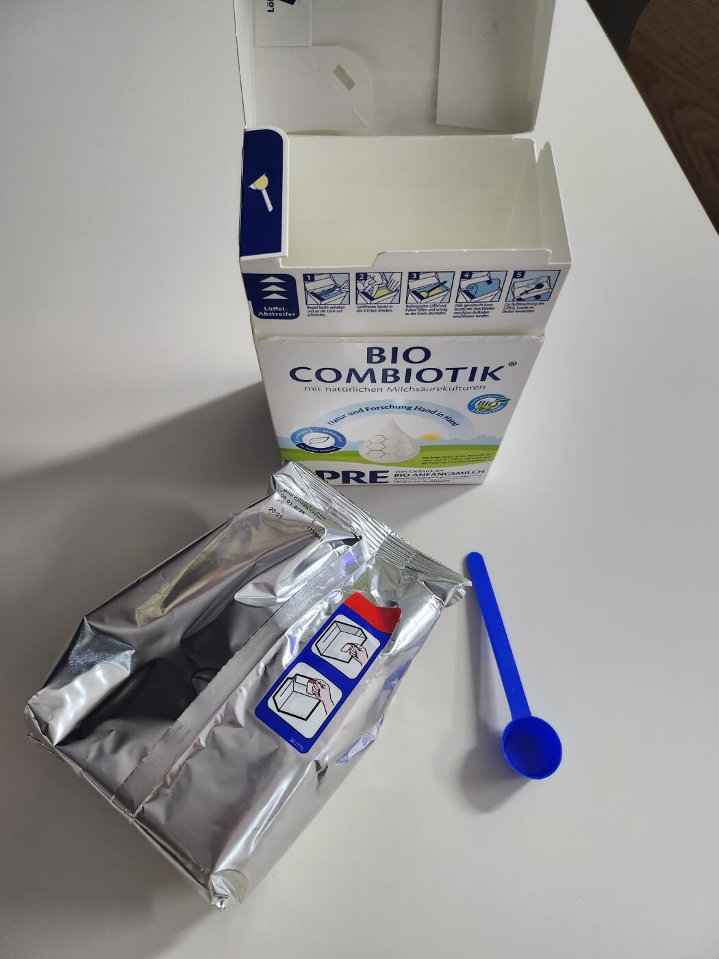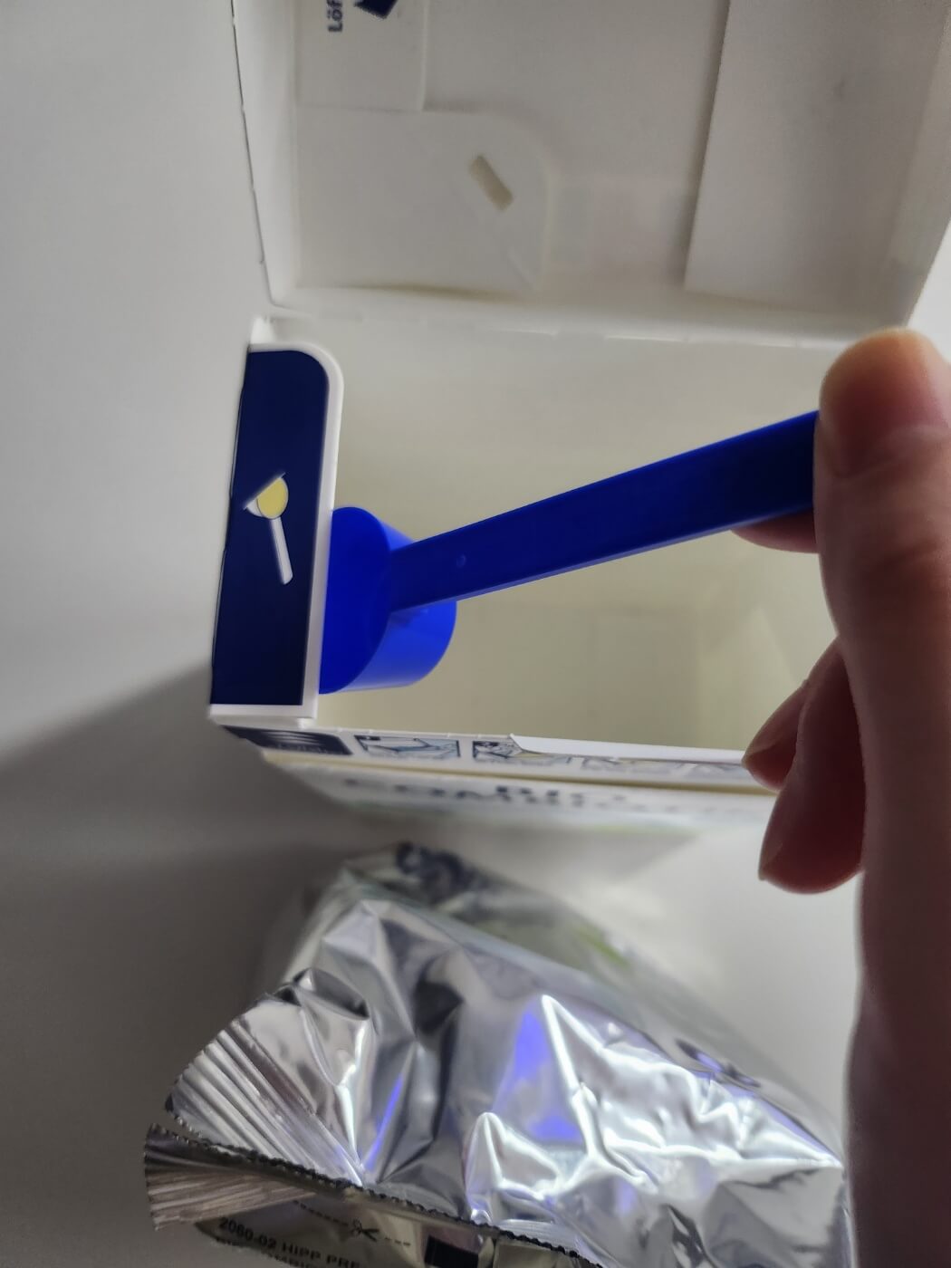 제가 매번 손 분유 타는 것 보다는 훨씬 나을 것 같았어요. 뚜껑을 열어 분유를 부은 후 분유 스푼으로 분유를 펼쳐준 후 다시 뚜껑을 닫아주면 끝이랍니다. 정말 쉽죠? 그리고 힙 프레 남은 분유는 저렇게 돌돌말아 보관용 스티커를 톡 붙여 박스에 다시 넣어주면 끝이랍니다. 브레짜에 붓고 남는 거 보관 저렇게 할 수는 있는데 손분유타며 매번 저렇게는 절대 못 할 것 같아요. 그래서 독일 내수용 힙 분유 사실 분들은 밀폐용기 혹은 분유 제조기를 구매하시는 것을 추천드립니다. 그게 정신 건강에 이로울 것 같아요.