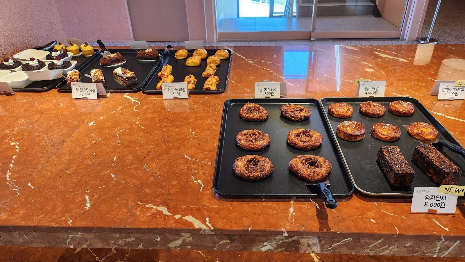 남편은 소시지 빵과 저는 고구마 패스츄리를 골랐어요. 소시지 빵은 약간 매콤한 맛이 있었다고 했고 고구마 패스츄리는 적당히 달달한 맛에 커피를 부르는 아이였지만 애석하게도 저는 커피를 마시지 못하여 속이 상했습니다. 그땐 몰랐죠. 둘이서 데이트하는 소중한 시간이었다는 것을... 그래도 지금 우리 귀염둥이가 있어 더욱 행복한 나날들이랍니다. 대구 동구 대형 베이커리 카페 GRVT를 소개하며 저의 조리원 시기가 또 떠오르네요. 조리원 다시가면 1주일만 갈겁니다. 그냥 그렇다구요... 우리 아가랑 집에 가고 싶은 마음이 엄청 간절했었더랍니다.