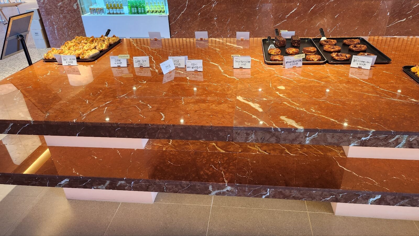 대구 율하 대형 베이커리 카페 GRVT 외관과 내부예요. 건물 엄청 크죠? 골프 연습장도 함께 있어서 골프 카페라고 부르도록 하겠습니다. 처음엔 카페를 잘못 찾았나... 진짜 골프카페였나 했는데 카페는 별도의 공간에 있어서 골프에 관심없으신 분들도 방문하셔도 된답니다. 저는 루프탑 이용은 못했지만 루프탑 카페라 뷰와 분위기가 진짜 좋다고 해요. 다음에 한번 방문해보도록 하겠습니다. 오픈 조금 전 시간이라 혹여나 여기서도 문전박대 당할까봐 노심초사했지만 직원 분의 눈치를 살피며 들어가니 제지하진 않으셔서 자리를 잡고 실내와 빵을 둘러보기 시작했어요.