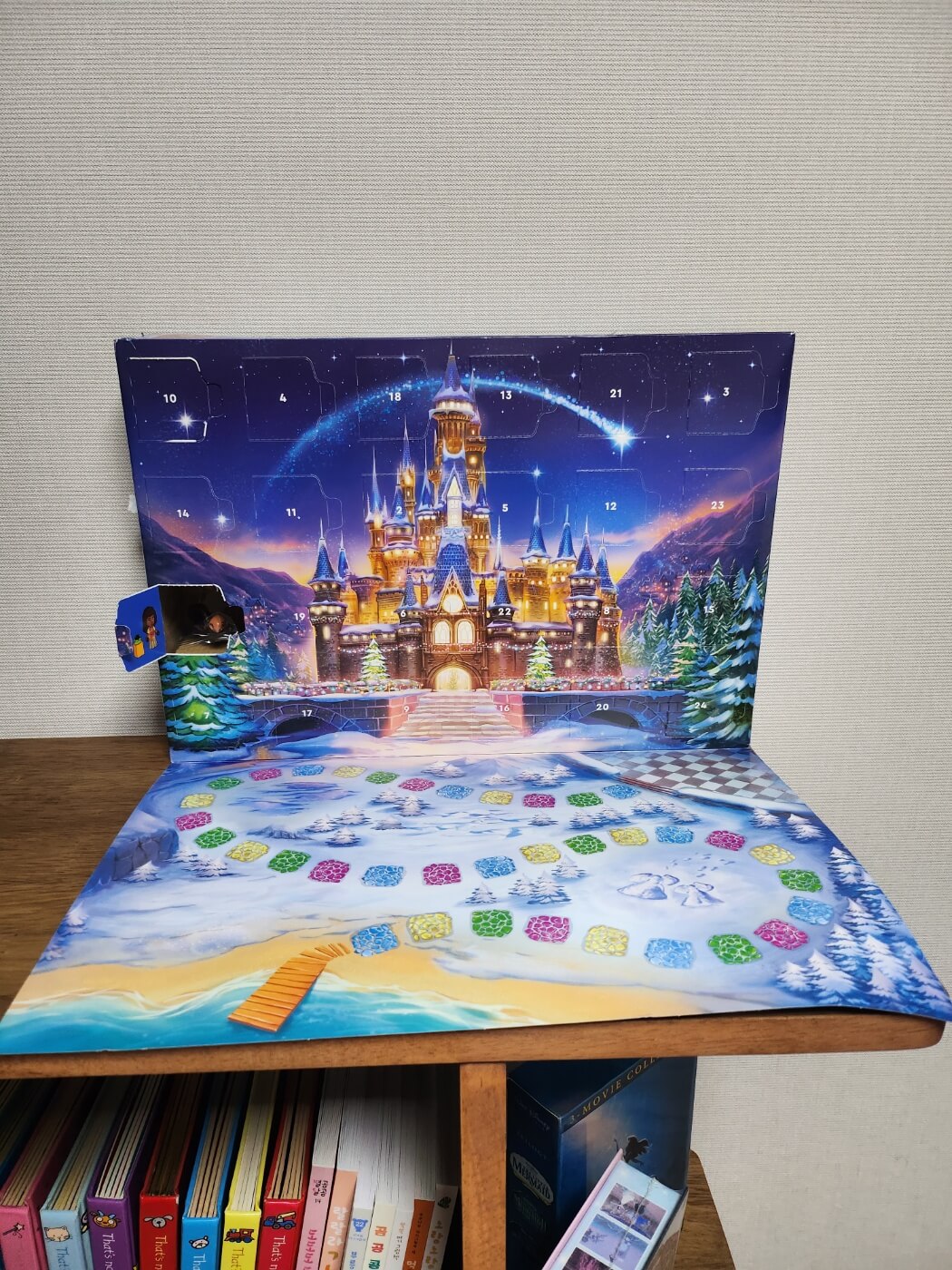 숫자가 뒤죽박죽이라 찾는데 조금 어지러웠다는 점~ 근데 이거 뜯는 재미가 상당합니다... 저 매일매일 너무 즐거워요. 트리 못하는 설움 어드벤트 캘린더로 달래고 있답니다. 이렇게 숫자가 적힌 칸을 열면 디즈니 레고가 나오는데 세상에... 너무 작고 귀여워서 미치는 줄 알았어요. 사진으로 보는 것과는 정말 달라요. 실제로 꼭 보셔야해요. 책장 위에 올려뒀는데 제 책상에서 고개돌리면 바로 보이는데 일하면서 짜증날 때마다 쳐다보면 너무 귀여워서 마음이 사르르 녹는답니다. 지금 제법 오픈했는데 너무 다 보여드리면 스포일러니까 참으려구요. 물론 박스에 이미 다 있지만요 하하하