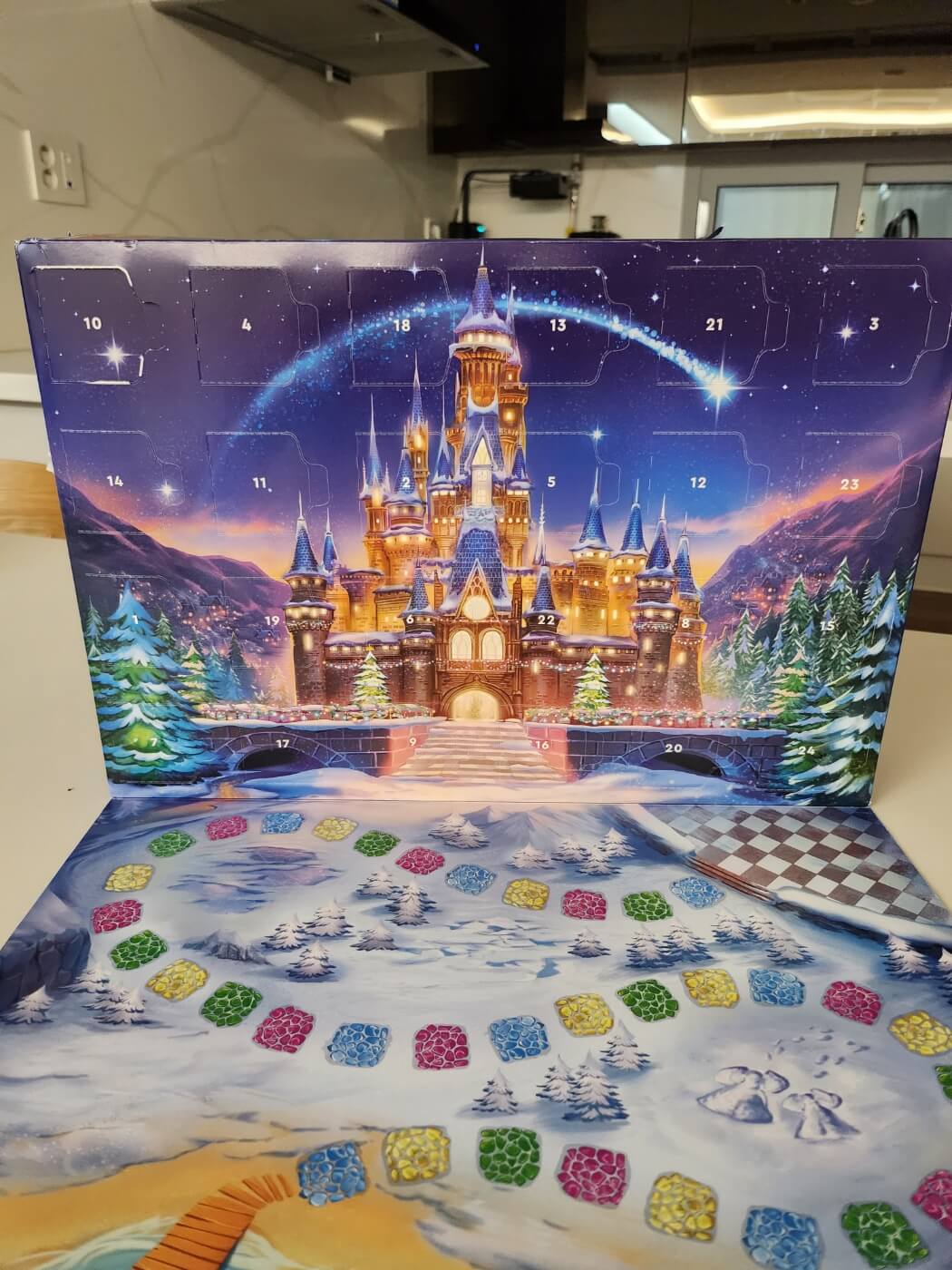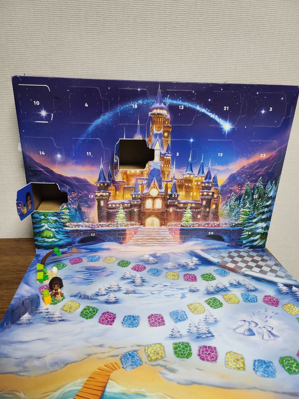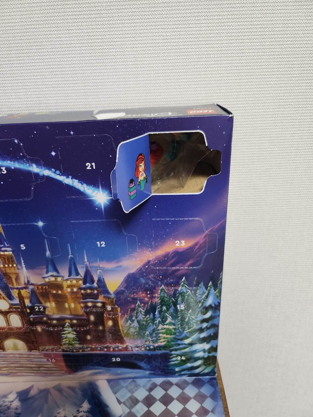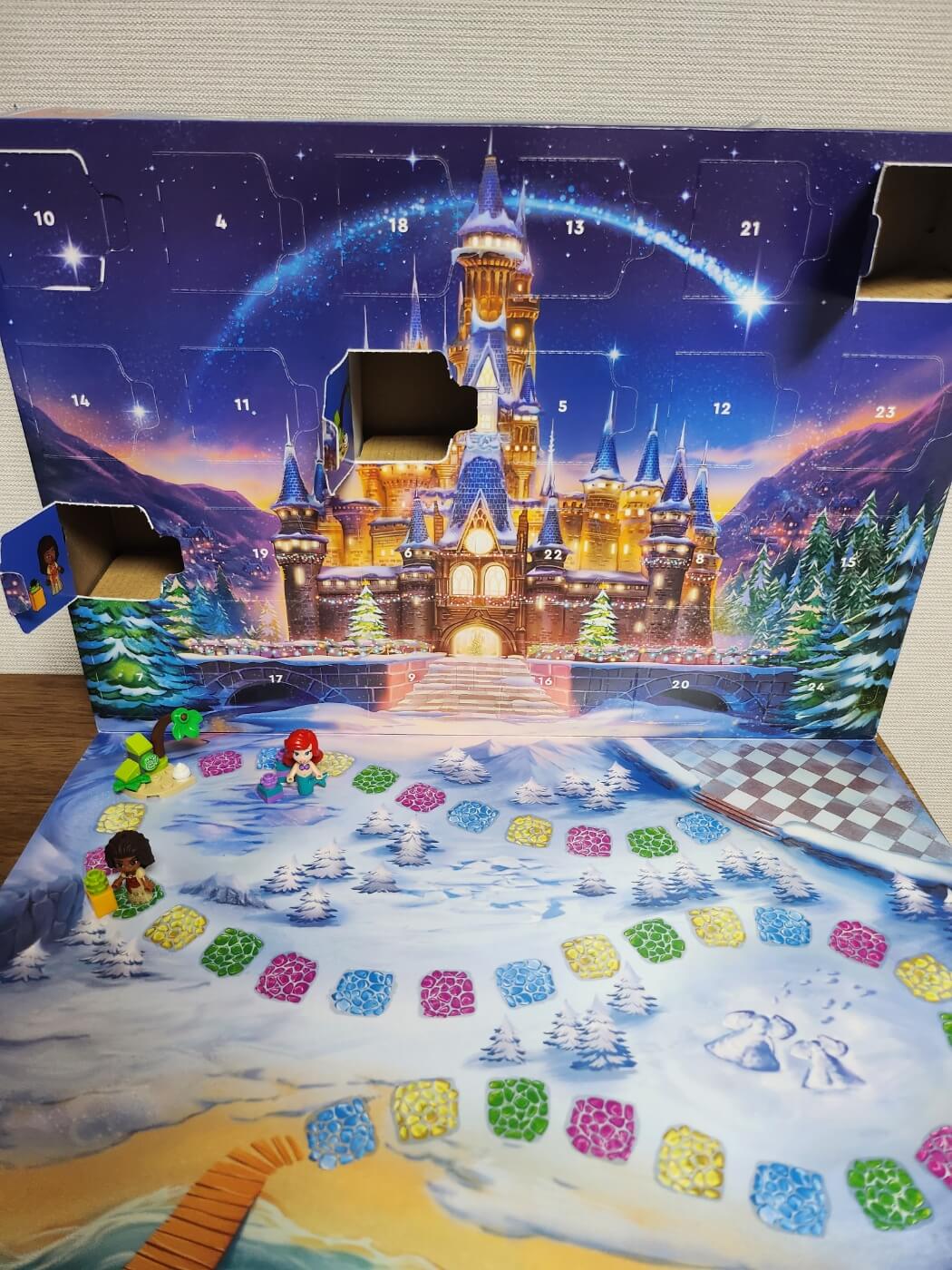 남편이 쿠팡으로 주문해 준 저의 크리스마스 선물 레고 디즈니 어드벤트 캘린더가 도착했어요! 한가지 아쉬운 점은 테이프로 저 밑에 판이 고정되어 있는데 그걸 떼어내니 박스가 다 벗겨지더라구요 ㅠㅜ 테이프 자국이 선명한 박스를 볼 때마다 아쉽지만 어차피 박스는 버려질테니 흐린 눈을 해봅니다. 여기서 어드벤트 캘린더가 뭔지 궁금하시죠? 바로 크리스마스가 다가오기까지 매일 하나씩 넘겨볼 수 있는 24일의 숫자가 적힌 달력인데 이것을 유래로 이렇게 하나씩 하나씩 뜯어보는 제품이 출시되었답니다. 오픈하는 과정에서 10번이 약간 손상이 되었지만 꾹 참고 10일에 뜯어보겠어요.