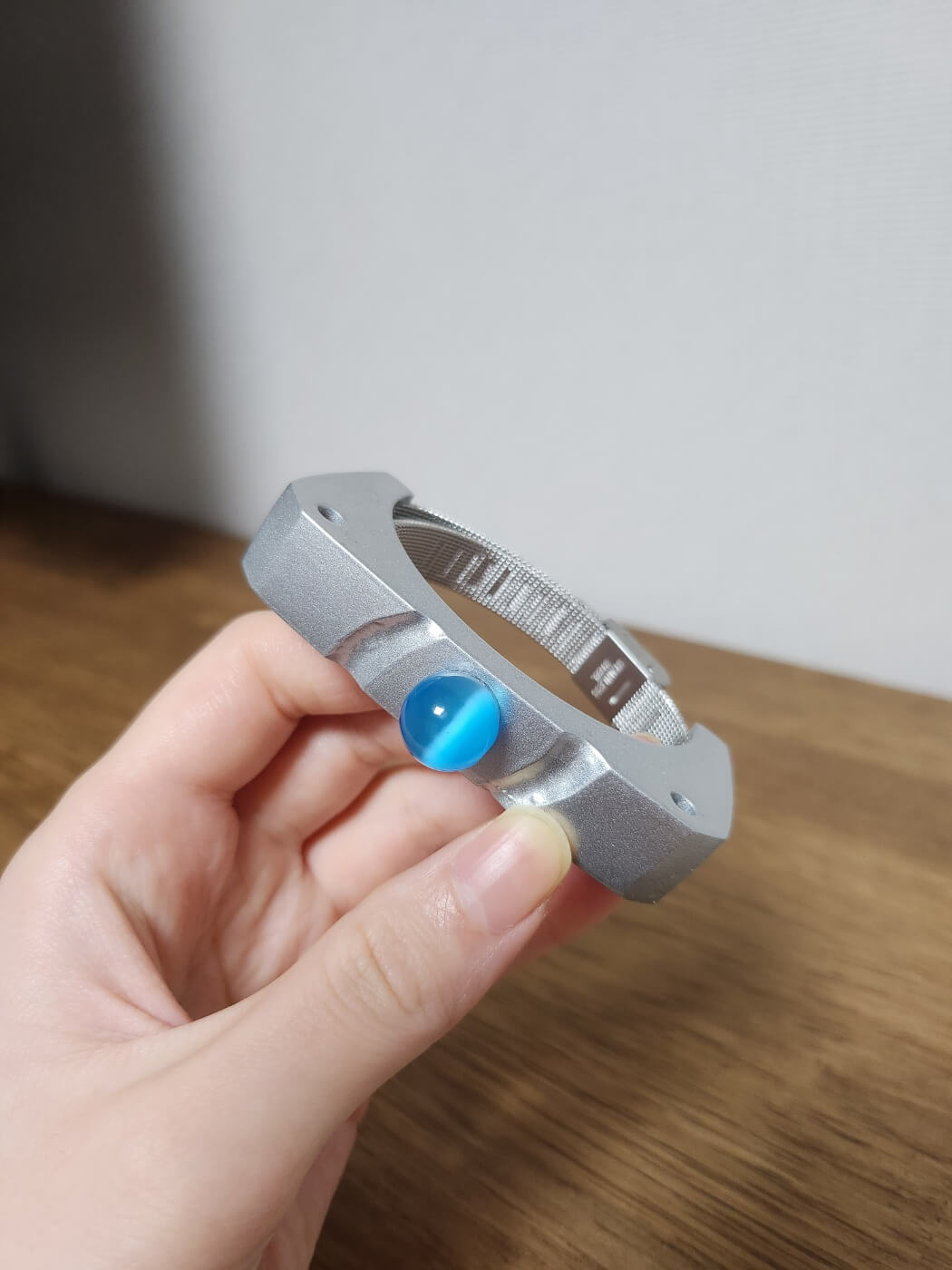 드라마에서의 블루링처럼 늘어나는 시계줄 같은 건 아니지만 그래도 고무줄 아닌게 어딥니까! 시중에 판매됐던 블루링은 고무줄 아니면 체인으로 되어 있어서 본 느낌이 제대로 안 났었거든요. 근데 세상에 이 블루링은 제법 진짜 블루링같이 만들어졌더라구요. 너무 감사드립니다. 금손이십니다. 블루링 팔찌로 검색하시면 찾으실 수 있을거예요! 파란 캣츠아이가 빛나는 저의 블루링입니다. 요리조리 돌려가며 구경했어요. 드라마 제품보다는 조금 투박한 느낌이 있는 것 같았어요. 실제 블루링이 조금 더 얄쌍한 느낌이라고 할까요? 물론 직접 착용하고 다니지는 않을거라 상관없긴 합니다.