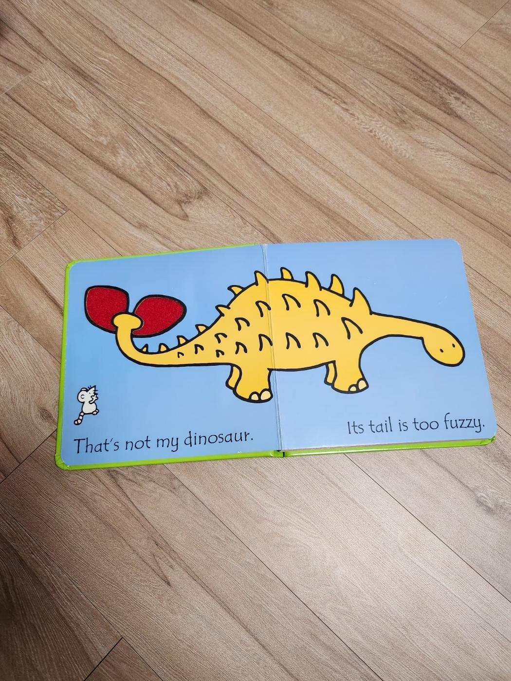다음으로는 That's not my dinosaur. 저건 내 공룡이 아니야. its body is too squashy. 몸통이 너무 물렁하잖아. squashy도 어떻게 해석해줘야할까 당황해하다 주름진 걸 보고 울퉁불퉁하잖아~ 로 해석해줬는데 너무 부드러워서 움푹 패이는 거라고 하더라구요. 이렇게 또 공부를 했답니다. 물렁한 저 공룡은 내 공룡이 아니야!
