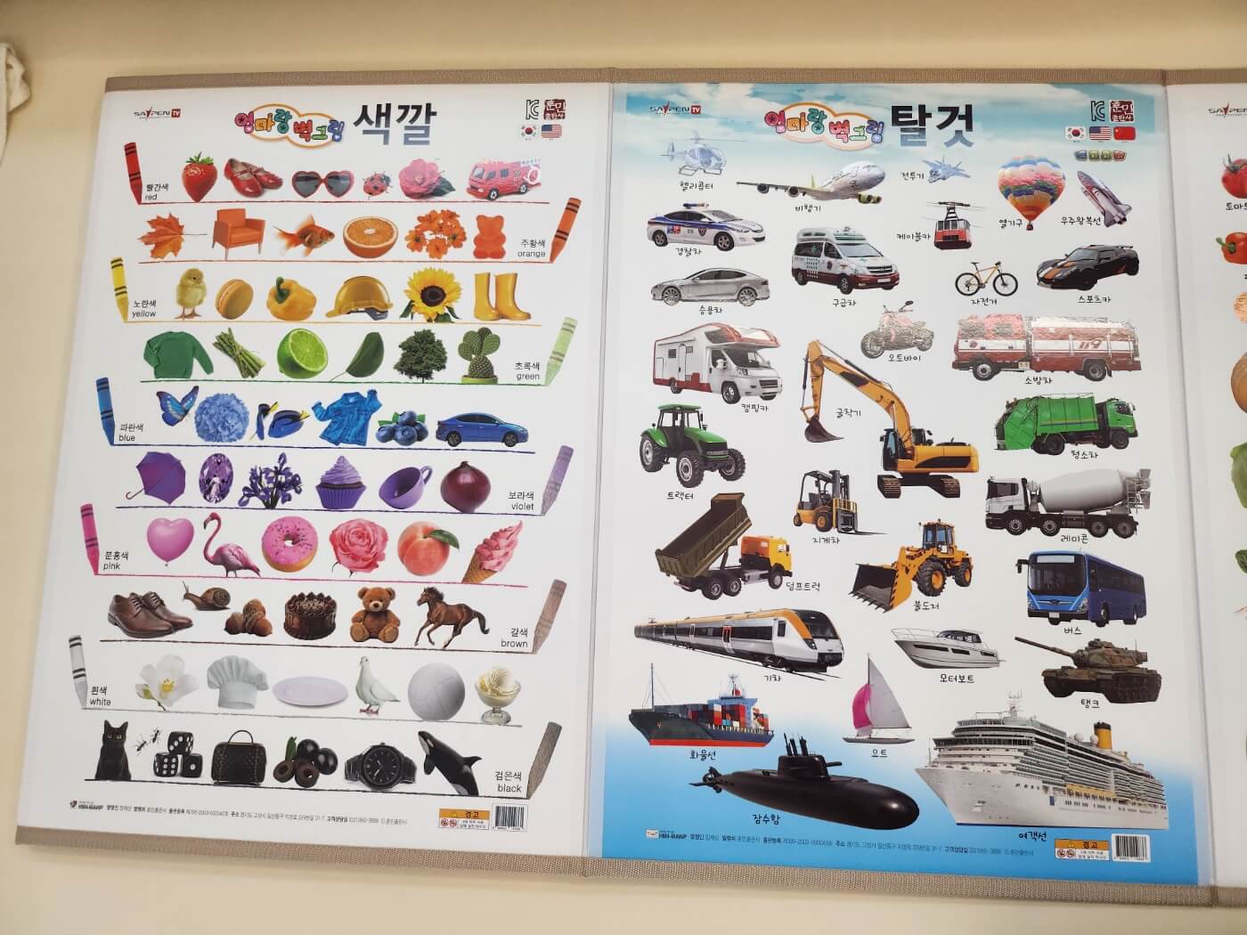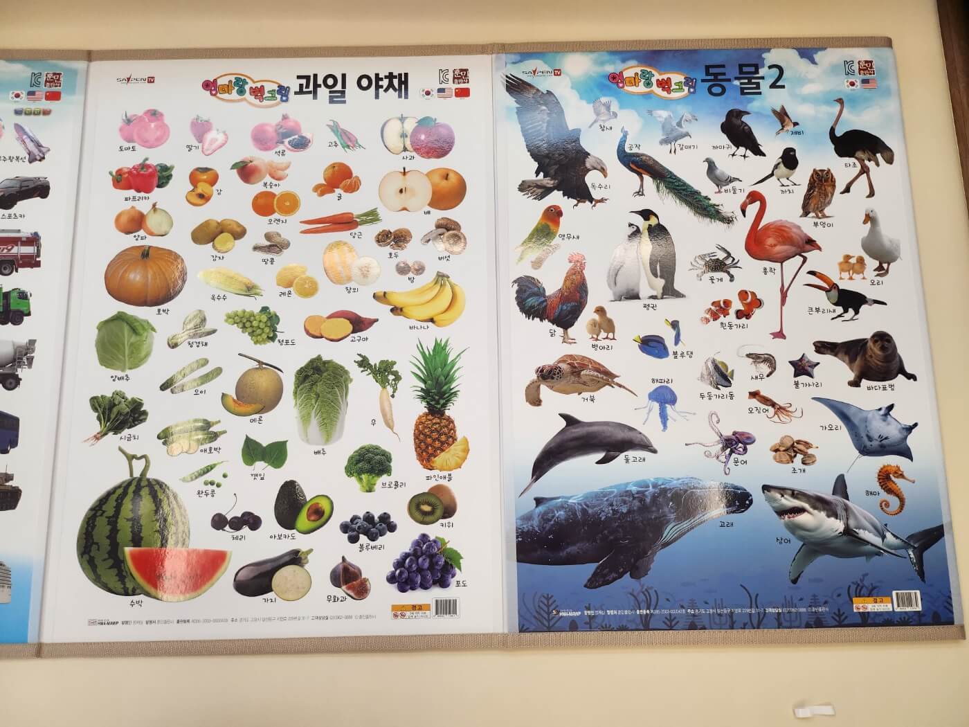 엄마랑 벽그림 아기 병풍 컨텐츠 다 찍어드리고 싶었는데 생각보다 사이즈가 크고 또 말이 8장이지 양면으로 하면 16개 잖아요? 그래서 찍다가 아기가 울길래 그 핑계삼아 찍기를 멈춘 못난 어매입니다... 정말 다양한 주제들로 병풍이 구성되어져 있죠? 아기 어휘 늘리기에도 좋을 것 같더라구요. 태몽이 물고기인 우리 아기 물고기 파트 제일 좋아할 것 같네요~