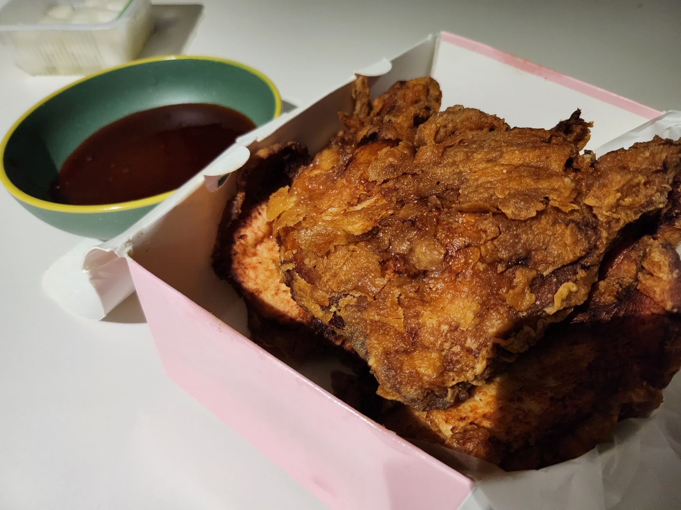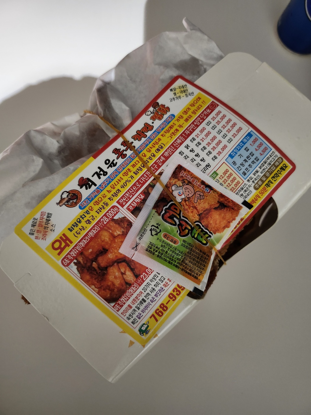 옛날 치킨의 감성인데 맛은 완전 요즘 감성인 대구 치킨 맛집! 최정윤 통통 치킨! 포장 비닐부터 치킨 박스까지 옛날 감성 물씬~ 최정윤 통통 치킨 풀네임은 뒤에 찜닭까지 붙는데 치킨과 찜닭 외에도 다양한 메뉴들이 있었어요. 그래도 제일 유명한 건 치킨이라고 하더라구요. 픽업하는데 비 오는 날 전화 주문해서 가지러 와줬다고 사장님께서 서비스 주셨다고 하시더라구요... 완전 감동이었습니다.
