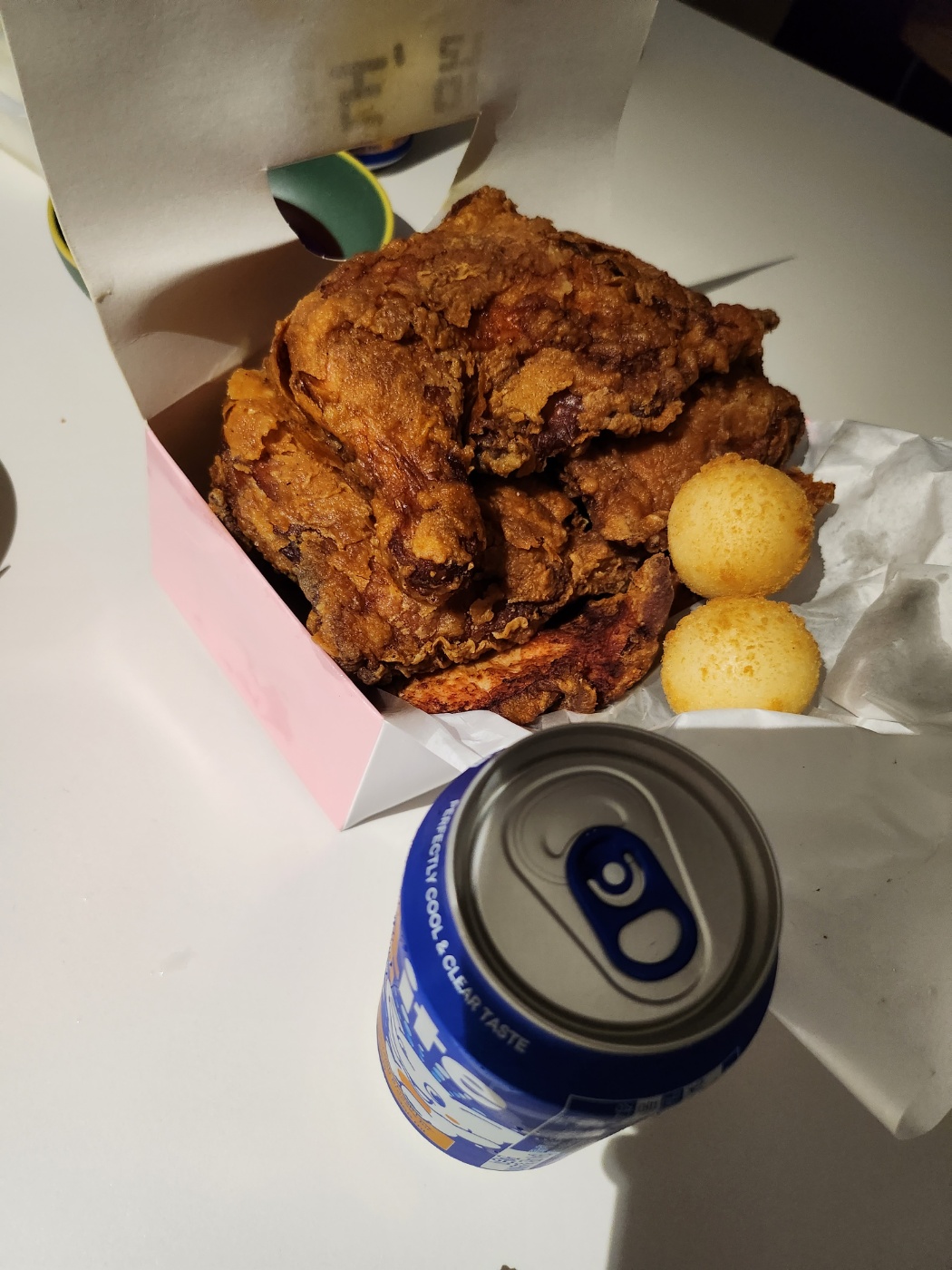 집에와서 포장해온 최정윤 통통 치킨의 핫치킨입니다. 비주얼은 진짜 옛날 통닭 느낌도 나면서 옛날 KFC 치킨 완전 큰 버전 비주얼이죠? 치킨 조각 사이즈가 커서 보기만 해도 배부를 것 같지만 그건 어이없는 말~ 먹으면 술술 잘 들어갑니다! 그리고 서비스는 바로 치즈볼이었어요! 핫치킨이기 때문에 매콤해서 먹다가 좀 매콤하고 짜면 치즈볼로 입을 쉬게 해주려고 드래곤볼 마냥 아껴 먹었습니다.