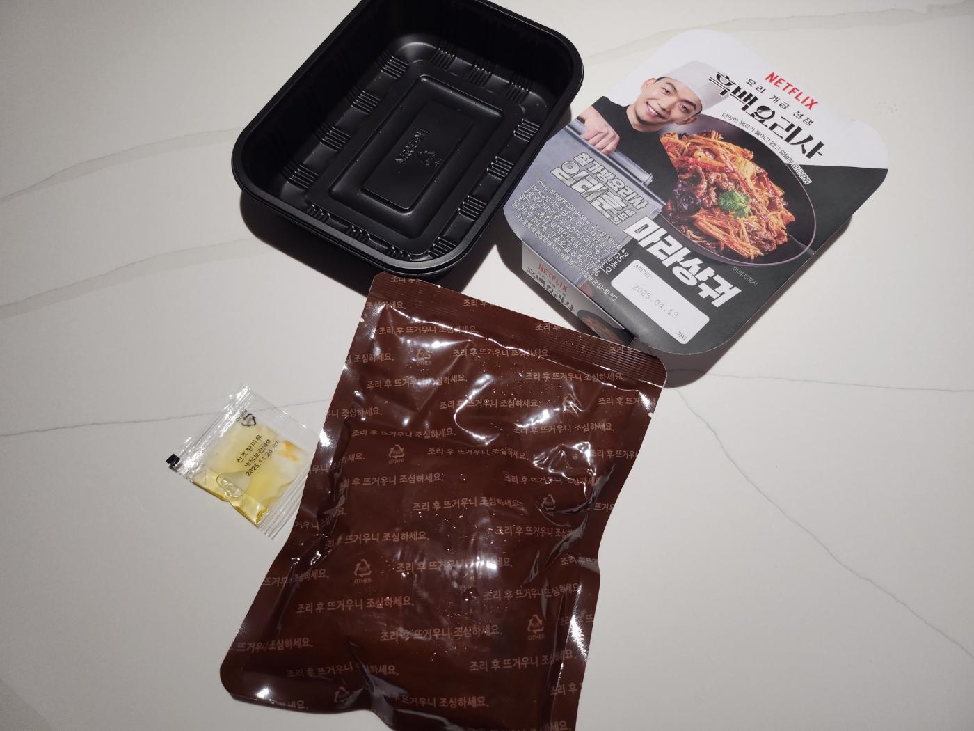 집에 돌아와 남편에게 GS25 임태훈 셰프 마라샹궈 구했다며 남편에게 자랑하고는 제품을 열어보았어요. 잉? 그냥 파우치 하나와 조미료 하나가 나오더라구요. 이렇게 간단해도 된다고...? 그냥 데우기만 하면 되는거야? 반신반의하였는데 더이상 나오는 게 없어서 그런가보다 했답니다. 오히려 좋아. 너무 간편하잖아?