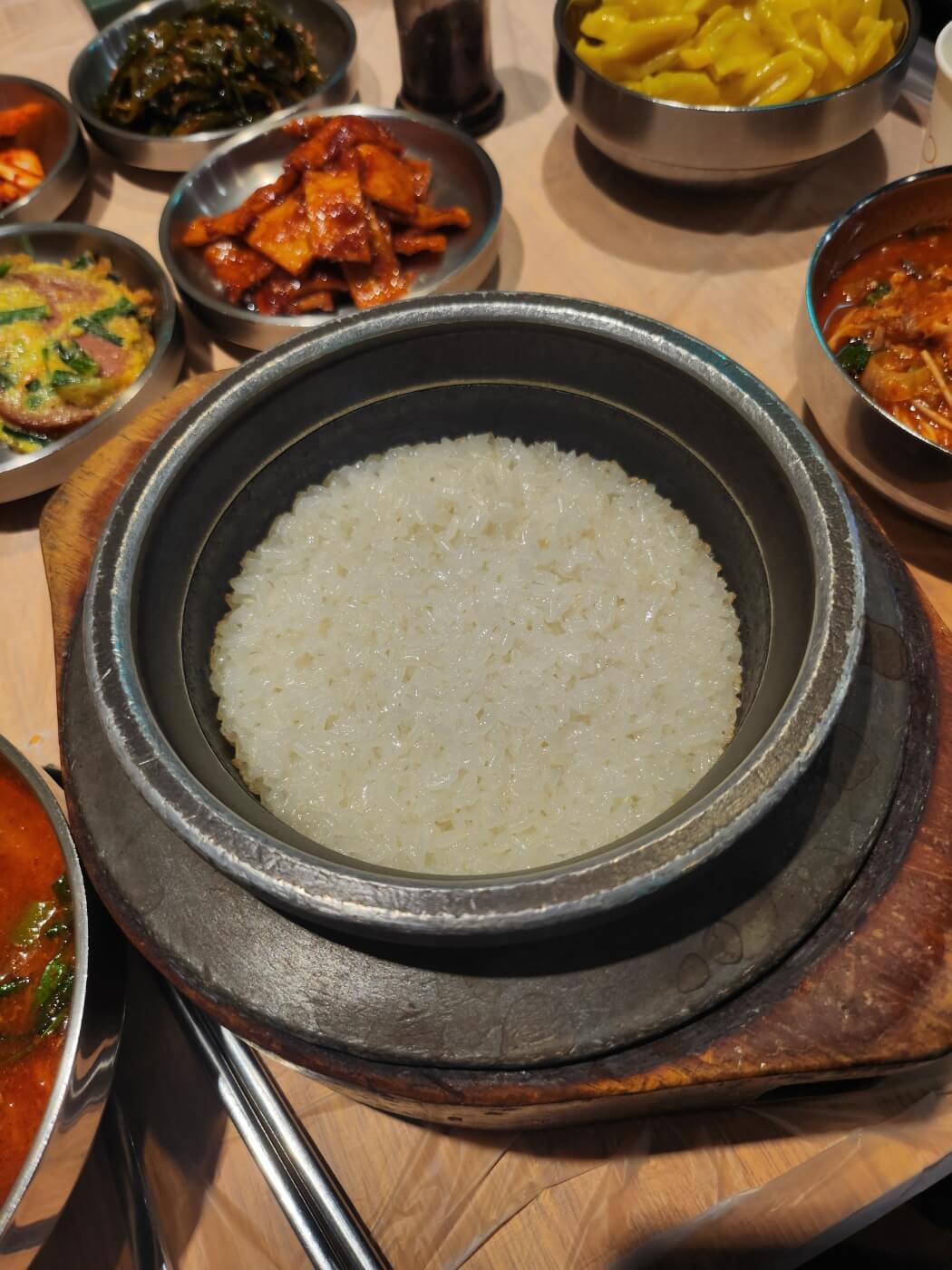 그리고 제가 입이 닳게 자랑했던 경산 남천민물매운탕의 밥! 사진에는 밥의 윤기가 안 담겨서 슬플 따름입니다. 여기는 밥이 진짜 예술이거든요... 저 밥 덜어내고 솥에 숭늉부어서 또 누룽지먹어주면 기절이거든요. 따끈따근한 누룽지 먹으면 속이 사악 내려간답니다.