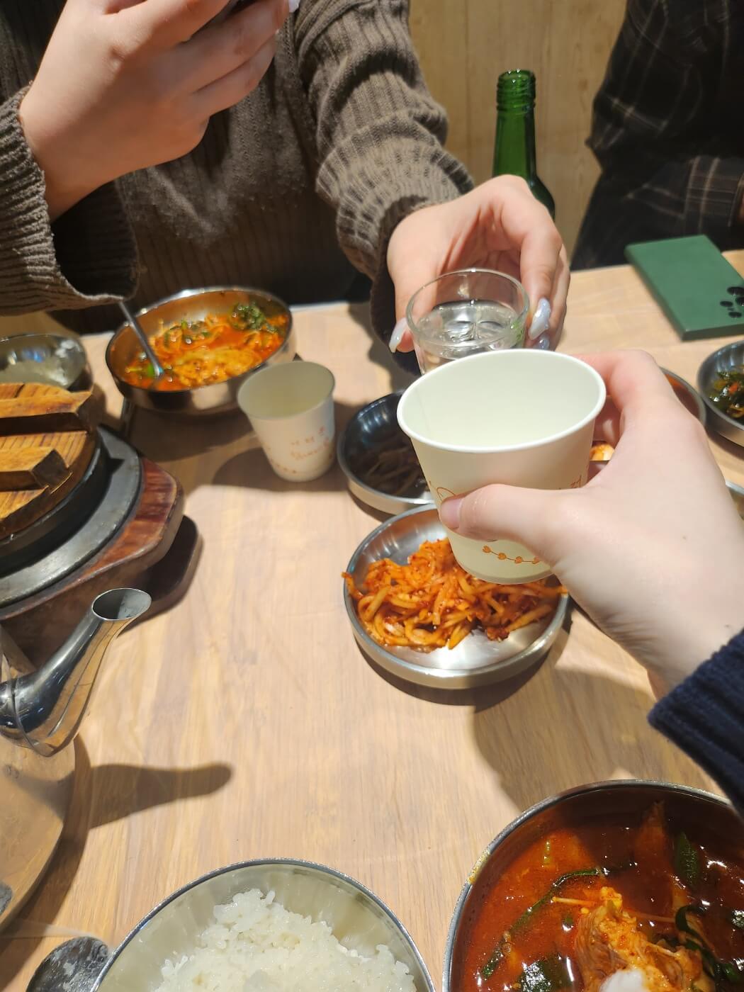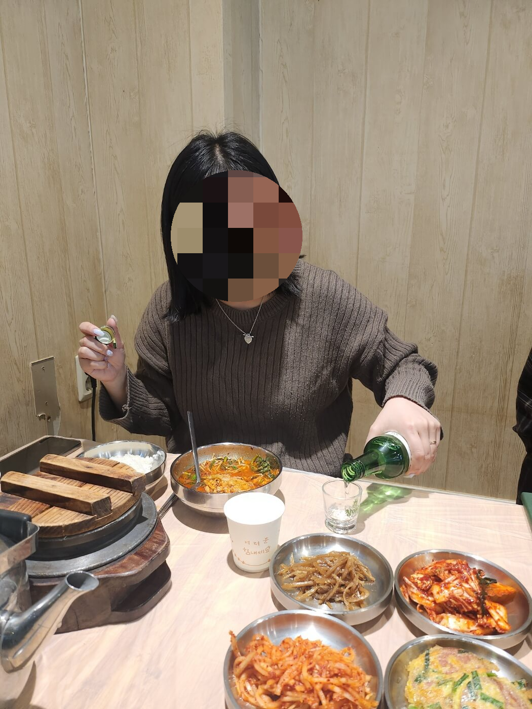 본격적인 식사를 시작하며 해장술 이야기가 나왔어요. 우리 주당은 말이 끝나기 무섭게 시켜도 되냐고 하더라구요. 제가 잔소리할까봐 눈치보느라 참고 있었더라구요. 평소에 안 하던 짓을 왜...하하하! 어제 주당걸에게 완패한 남동생은 자기는 못 먹겠다며 손사래를 쳤고 남편은 운전이슈로 못 마시고 저는 딱 한잔만 마시기로 했답니다.