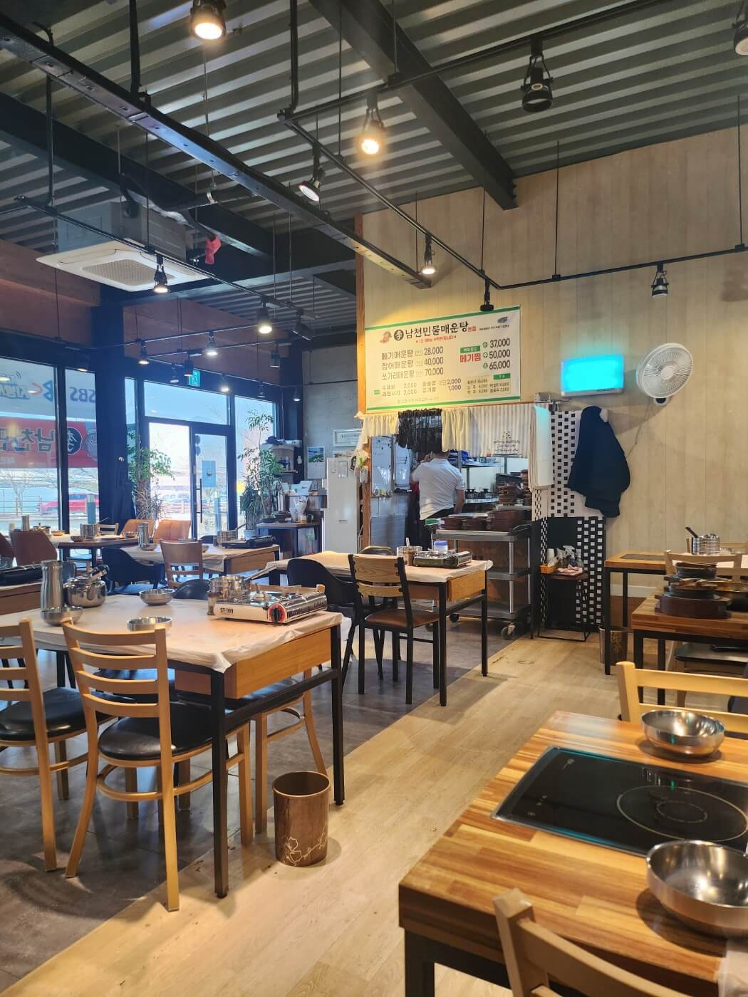 남천민물매운탕은 경산 남천에 위치해 있어 차로 이동해야하며, 주차장은 가게 앞에 넓게 있으나 테이블 수 대비 적어서 근처 길 가에 주차해야할 때도 있는데 저희는 늘 실패한 적은 없습니다! 오전 10시 40분부터 저녁 8시까지 영업하고 라스트오더는 7시라는 점~ 경산 이색 맛집 소개해드렸습니다. 그럼 행복하세요 안녕~