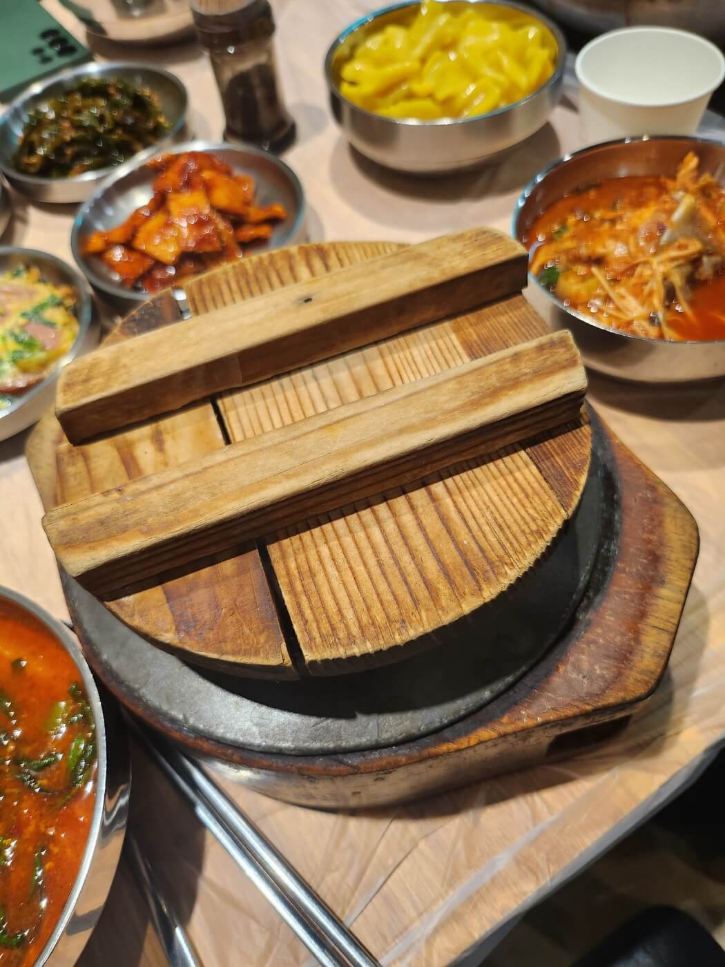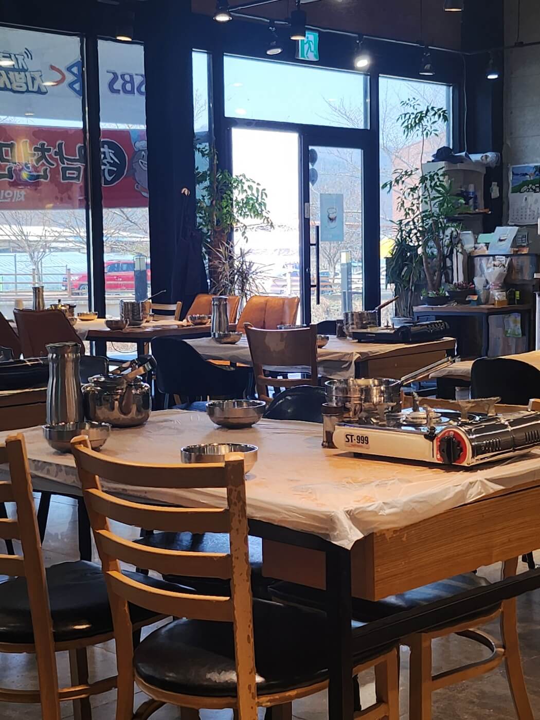 블로그한다는 사람이 또 외관 안 찍어서 내부 사진으로 대체~ 저희는 오픈런을 했어요. 경산 맛집으로 유명해서 그런지 오픈인 10시 30분에 이미 다른 테이블이 있었고 또 우리 뒤로도 줄줄 들어왔답니다. 앉아있는데 계속 전화로 예약을 하더라구요. 저희도 우리도 메뉴 미리 예약하고 올 걸 했답니다. 빨리 먹고 싶어서 다들 침만 흘리고 있었거든요.