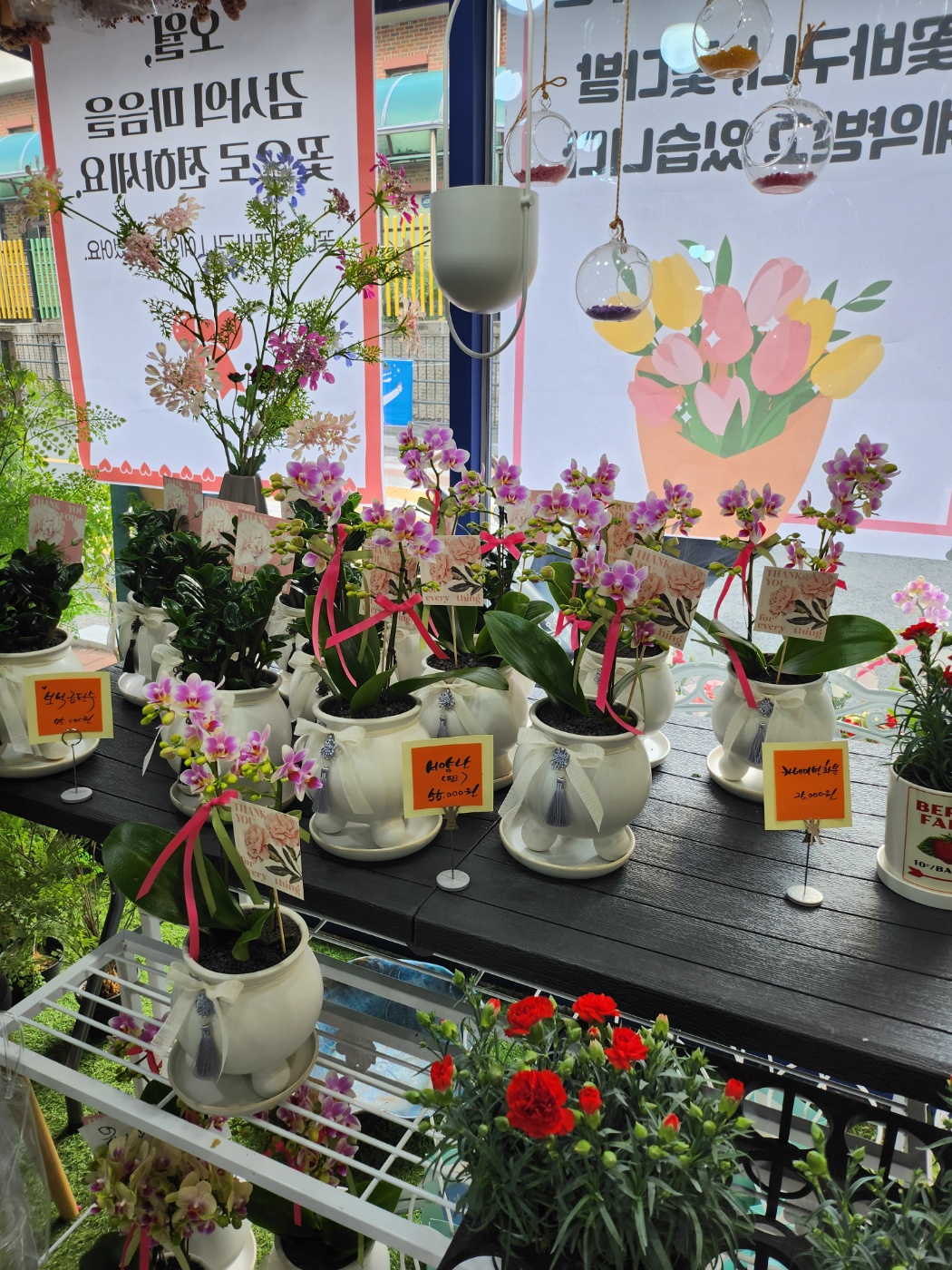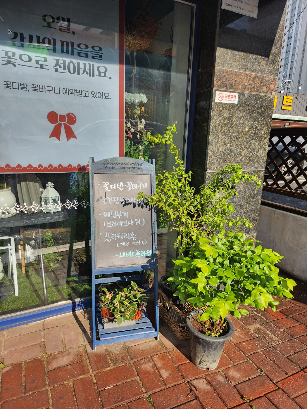 어버이날과 스승의 날로 인해 카네이션 상품들이 많이 디피되어 있었어요. 실제로 가게 내부로 들어가면 훨씬 더 다양한 카네이션 화분과 꽃다발을 볼 수 있었답니다. 굉장히 많은 물량을 보아 제법 시지에서 인기많은 꽃집이구나 실감했어요. 이러니 미리 예약을 꼭 해야하겠더라구요. 실제로 제가 픽업하러 갔을 때도 많은 손님들이 주문한 꽃을 찾으러 오셨더라구요.