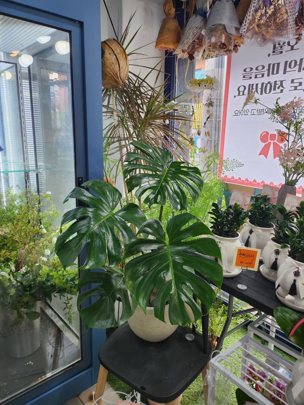 가게 내부에는 제가 좋아하는 몬스테라가 대형으로 있어서 안 찍을 수 없었답니다. 개업한 친구에게 화분 선물할 때도 여길 찾으면 될 것 같더라구요. 욱수동 꽃 맛집 비비드플라워! 난 화분도 가짓 수가 엄청 많아서 마음에 드는 거 바로 픽업해서 선물하기에도 좋을 것 같았어요. 아기랑 같이 방문했었는데 아기가 꽃집이 처음이라 눈위 휘둥그레 해 졌던 기억이 나네요. 얼마나 귀여웠는지... 아기에게도 좋은 추억이 되었던 꽃집 방문!