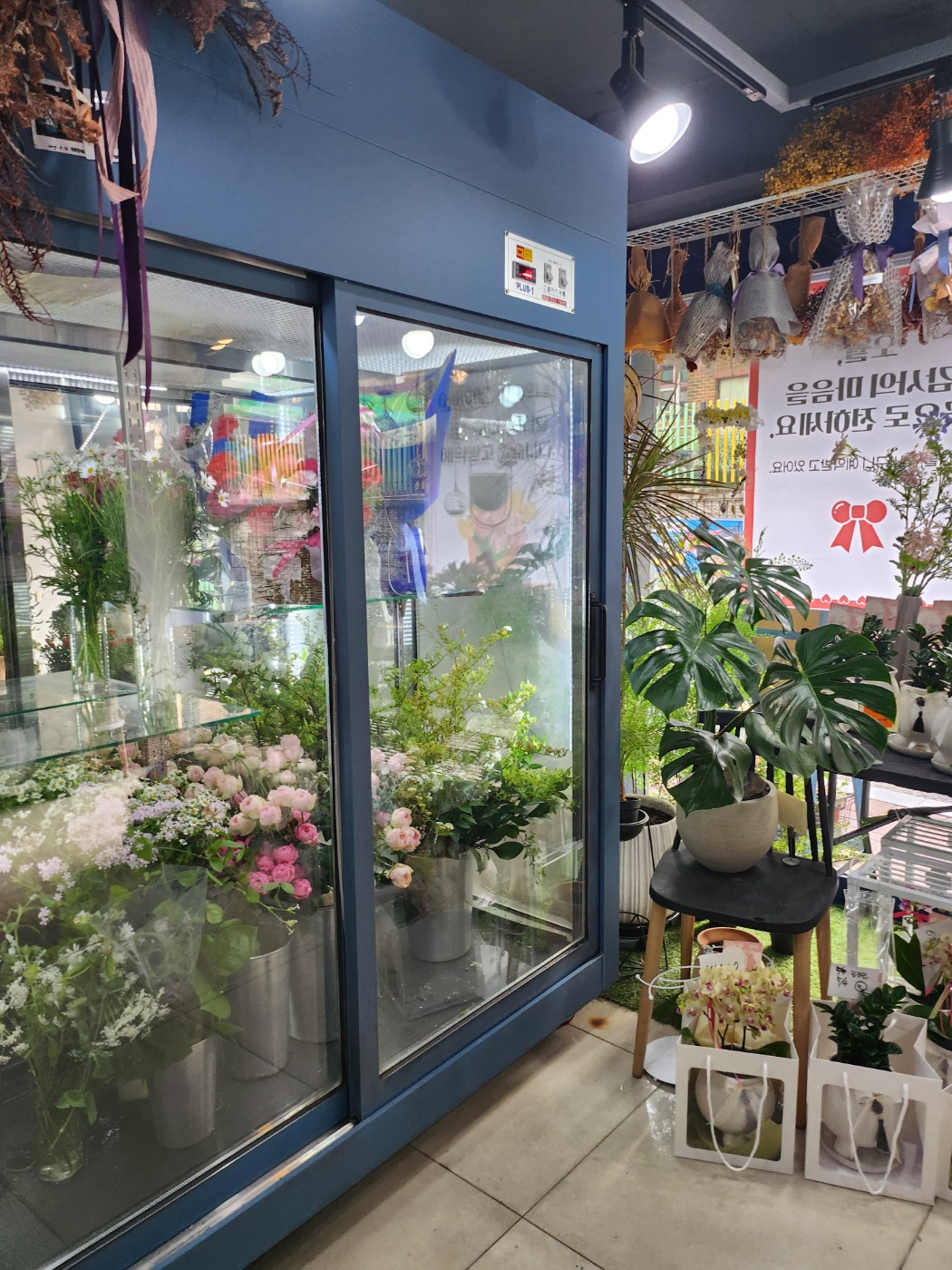 꽃다발 제작을 위해 예쁜 시즌 꽃들이 냉장고 안에 있었어요. 만들어진 꽃다발은 상단에 있고 절화 전의 꽃들은 아래 물통에 꽂혀져 있는데 저는 꽃집에서 저 꽃장고가 늘 너무 예쁘더라구요. 다양한 꽃들이 꽂혀진 모습을 보면서 꽃 선물할 사람을 또 떠올리게 하는 마성의 공간. 역시 꽃집에 오니 사회생활로 찌들어 TTT가 된 저도 F가 되어버리네요. 너무 감성적이어졌습니다.