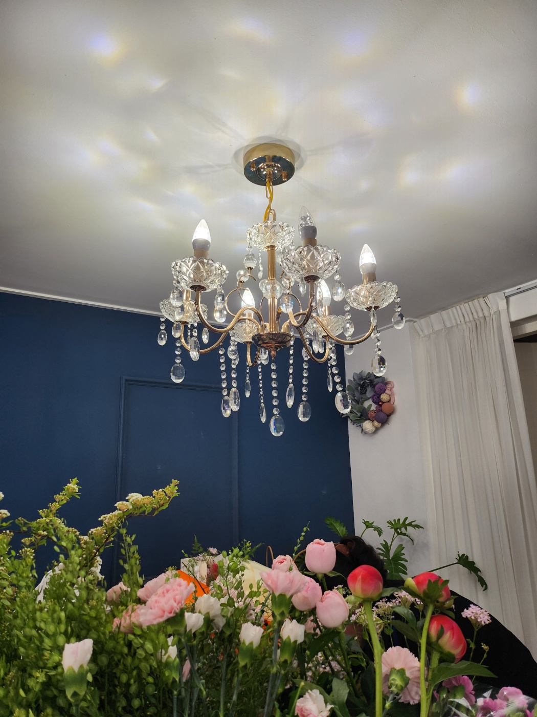꽃다발 수정을 부탁드리며 가게 내부를 둘러보며 열심히 사진을 찍었어요. 그 와중에 작업 테이블 위에 샹들리에 넘예... 블루 앤 화이트 조합의 가게 인테리어와 많은 꽃들 거기에 샹들리에까지 저 공주 취향이었나봐요. 가게에 눌러앉을 뻔,,, 친절한 꽃집 사장님 덕에 아기와 함께 꽃가게 구경도 많이 하고 예쁜 꽃다발도 받았어요.