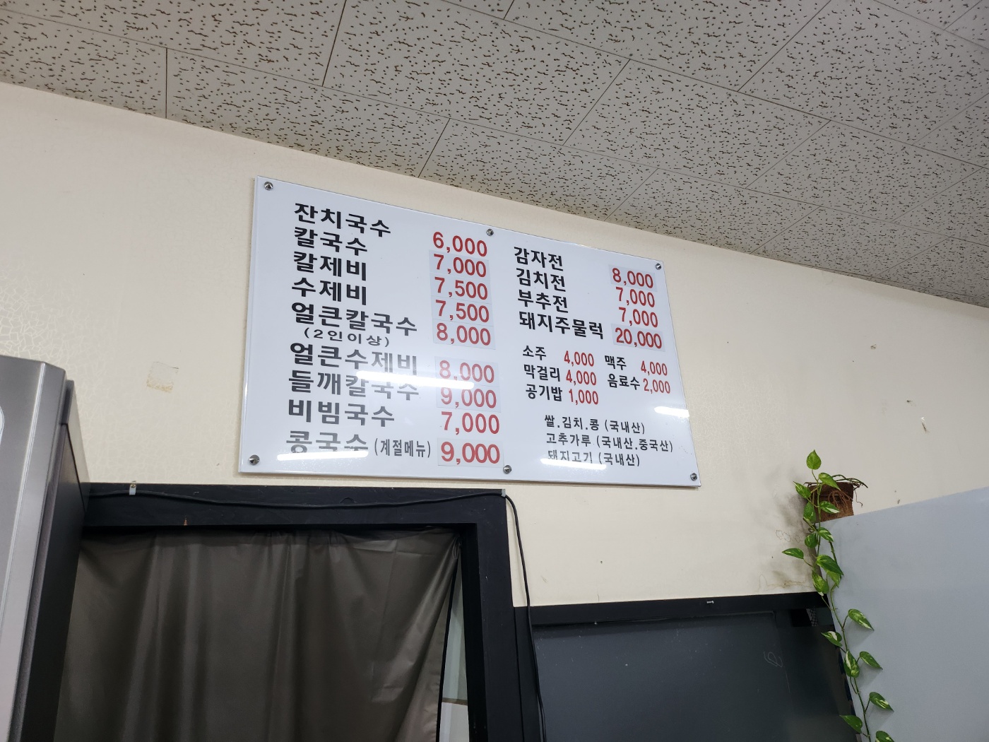 경산 중방동 정평역 근처 수제비 맛집 칼국수한그릇의 메뉴예요. 칼국수한그릇이라는 이름답게 칼국수도 맛있다고들 하는데 전 수제비를 좋아해서 여기선 늘 수제비만 먹는답니다. 칼국수 좀 얻어먹어봤는데 쏘 나이스하지만 극수제비파를 꺾을 순 없었습니다. 수제비 강추강추! 전도 종류별로 다 먹어봤는데 다 맛있었어요. 특히 감자전이 감자채를 썰어 바삭하게 튀기듯 부쳐주시는데 별미랍니다. 이날은 너무 정신이 없어서 전 시킬 생각도 못했어요. 그래서 전은 빠져버렸습니다.