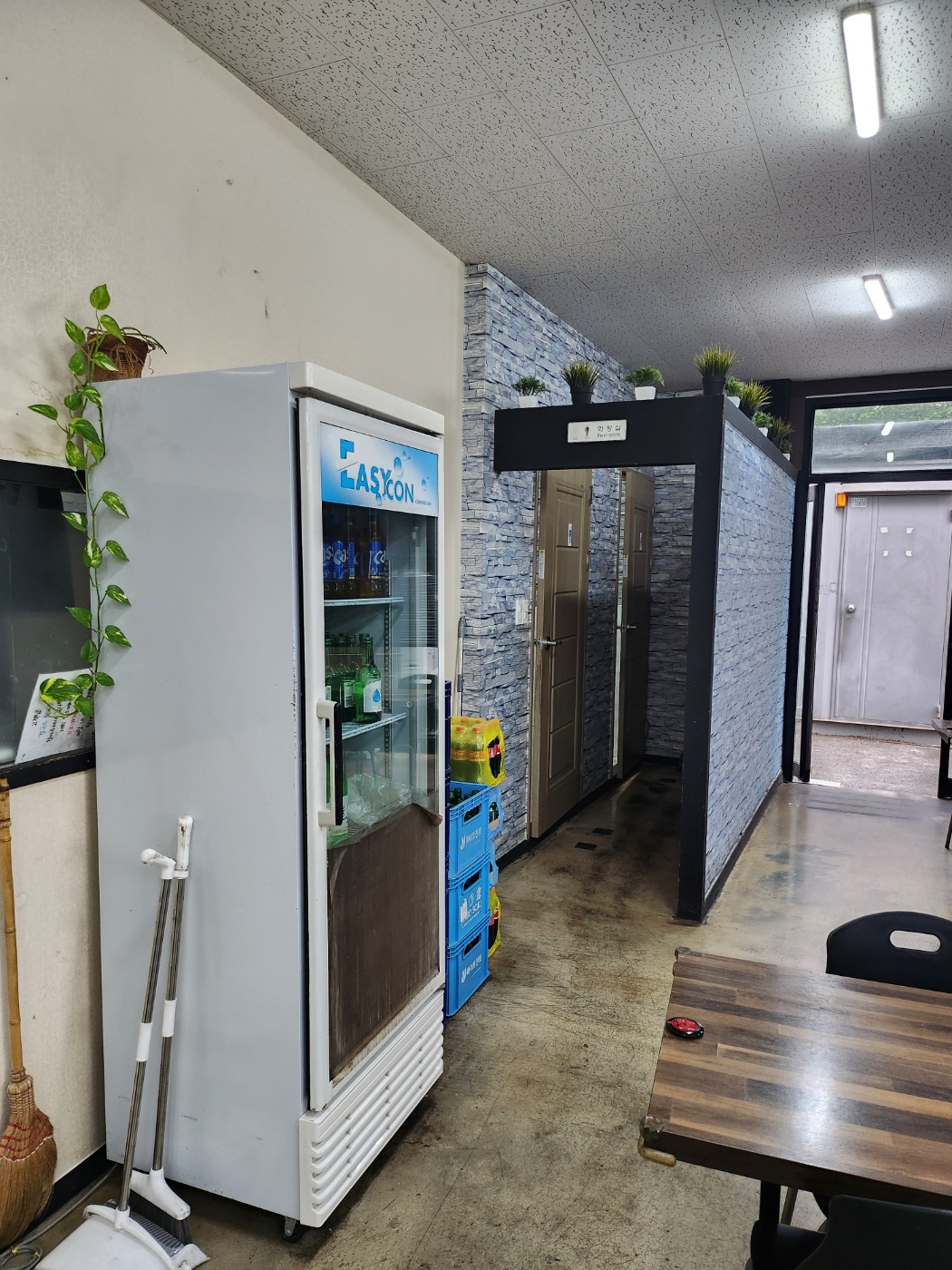아버지는 절 따라 수제비로 주문하셔서 수제비 두개를 시킨 후 가게 구경을 좀 해보았답니다. 가게는 제법 큰 편이고 테이블 수도 많아요. 그래서 바쁜 식사 시간에 가도 자리가 없어 웨이팅하는 불상사는 피할 수 있었답니다. 가게 정문으로 들어가서 오른쪽 편 구석에 화장실이 있는데 화장실도 깔끔한 편이라 이용하기에 불편함이 없어요.