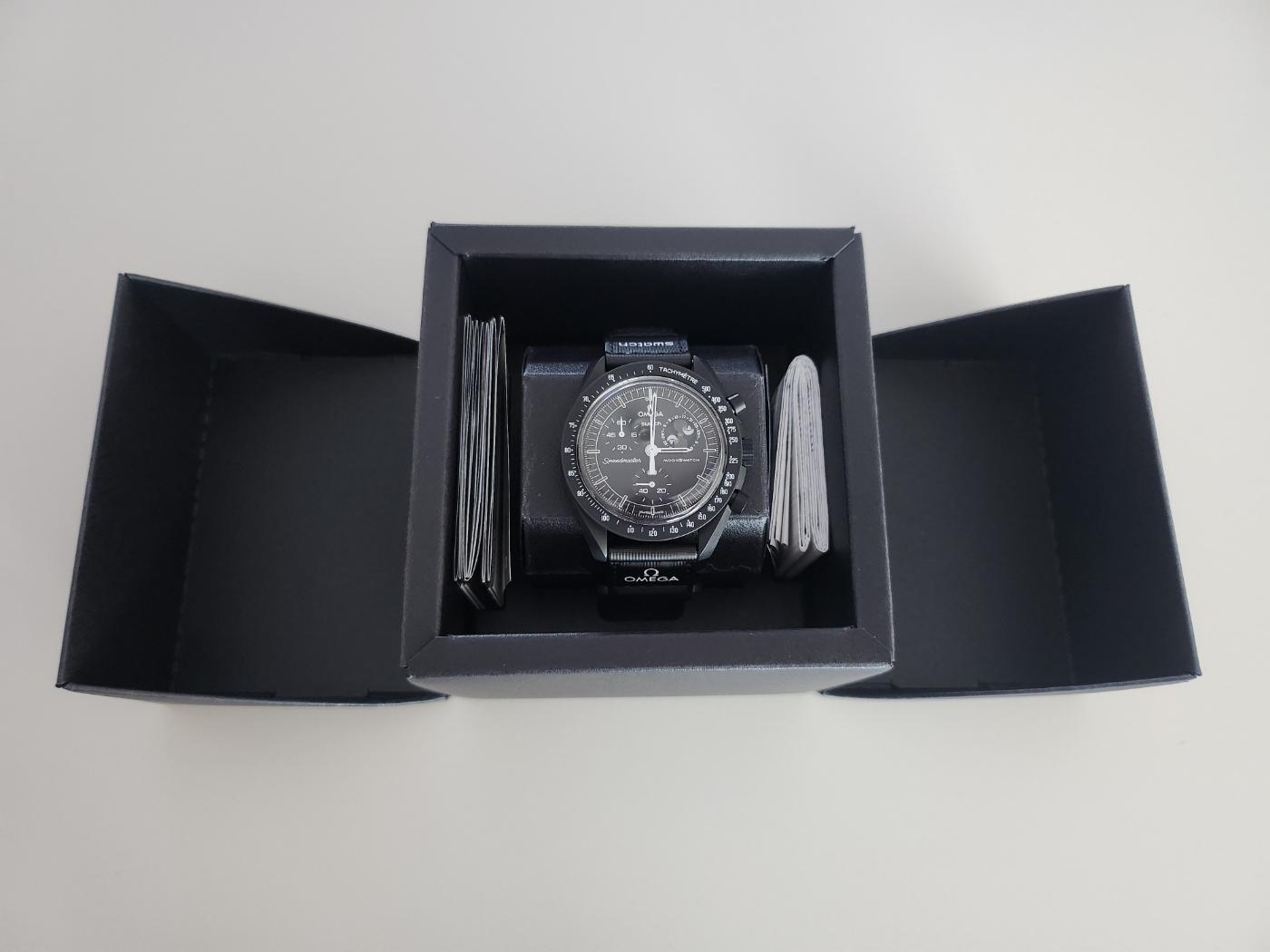 커버를 벗겨주면 이렇게 본케이스가 나오는데 설명서를 꺼내주면 드러나는 문스와치 스누피!!! 진짜 오메가 스피드마스터랑 유사한 외관,,, 넘나 취향 저격이었습니다. 오메가는 달 탐사 시계로 아주 유명하죠? 스누피는 나사의 안전 마스코트 역할을 한다고 해요. 안전한 우주탐사 심볼인 스누피와 최초의 달탐사 시계인 오메가 스피트마스터가 만나 더욱 의미가 있는 시계라는 생각이 들어요. 사실 문스와치가 처음 나왔을 때 프리미엄이 어마어마하게 붙을 정도로 인기가 많은 시계였으나 시간이 흐르며 내구성과 기능에 대해 안티가 제법 생겼답니다. 바이오세라믹 소재로 플라스틱같은 느낌을 줘서 장난감 같다는 이야기도 많지만 전 나름 예쁘던데...하하! 그리고 스트랩도 벨크로 타입이라 다이얼 옆으로 벨크로 튀어나오는 것도 좀 거슬리긴 했어요.