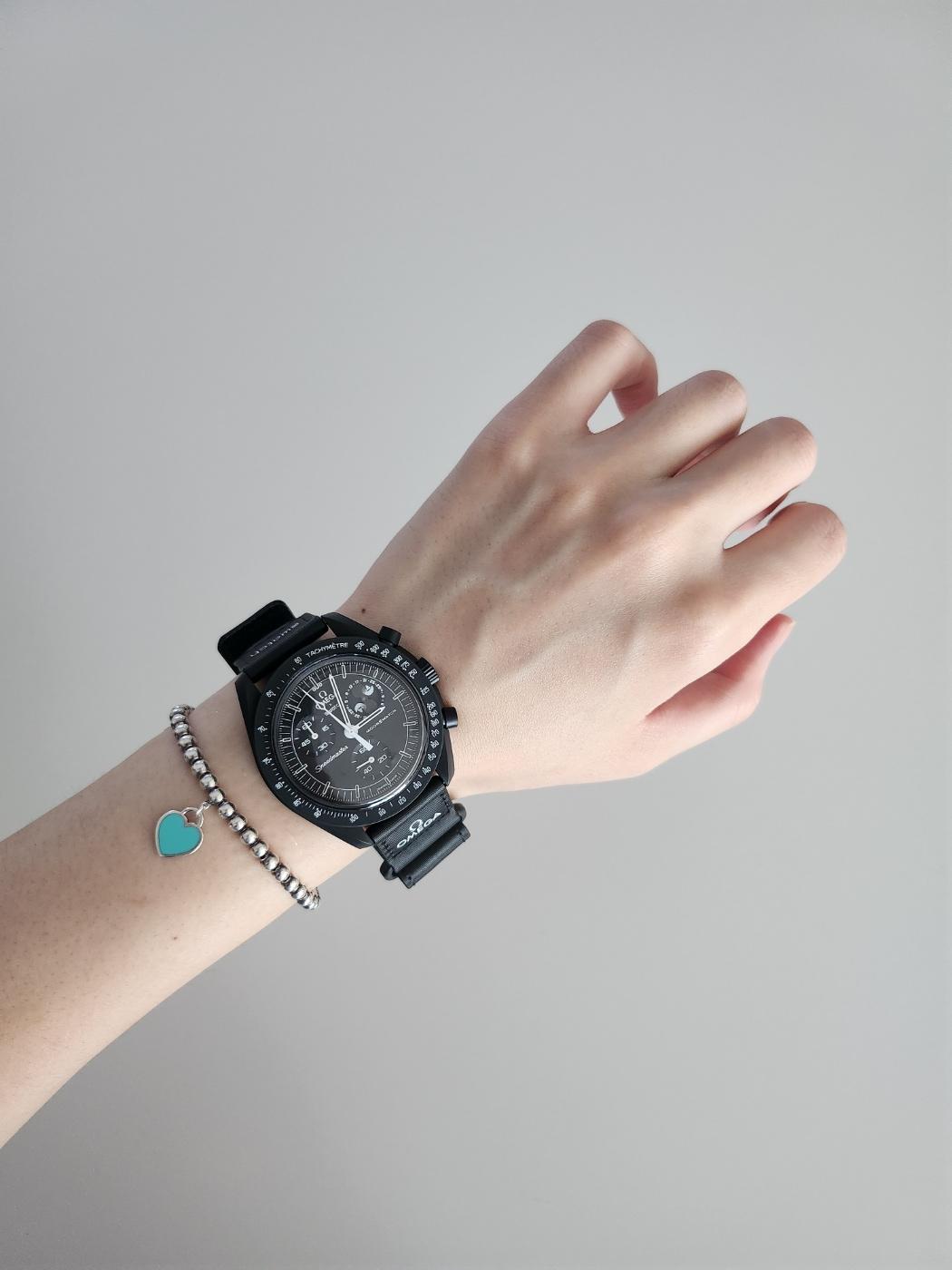 여자 손목에 좀 클 수도 있는 42mm 케이스인데 캐주얼 시계에 가까운 디자인이라 평소 룩에 착용하니 아주 잘 어울리더라구요. 전 캐주얼룩에는 시계 다이얼이 큰 게 예쁘더라구요. 티파니 팔찌랑도 참 잘 어울리죠? 여자여자한 팔찌와 레이어드해도 찰떡으로 잘 어울리는 문스와치 스누피 에디션 블랙! 전 사실 화이트파였는데 실제로 착용해보니 저한테는 블랙이 조금 더 잘 어울린다고 생각해요. 나중에 화이트와 비교도 같이 보여드릴게요. 그럼 행복하세요 안녕~