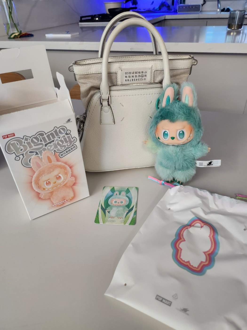 쏘 영롱한 저의 라부부 좀 보세요. 네 너무 신나서 막 뜯어가지고 뜯는 과정은 없습니다. 또 라부부가 환경 생각한다고 원래 비닐 파우치에 담겨 있었는데 저 파우치로 바뀌면서 카드가 먼저 보이더라구요. 박스를 뜯는 순간 뭐가 나오는지 스포 당해버리는 매직,,, 라부부 인기가 치솟는 만큼 가품이 판을 친다고 해요. 그래서 알아보는 라부부 정품 비교 방법! 우선 박스 뒤에 홀로그램이 있는데 오른쪽을 긁으면 인증번호가 떠서 QR찍어서 확인해보기! 다음으론 라부부 이는 9개, 발에 팝마트 로고가 음각으로 있어야 합니다. 그리고 카드가 있어야하고, 키링 고리가 연결되어 오는 지 확인해야해요.