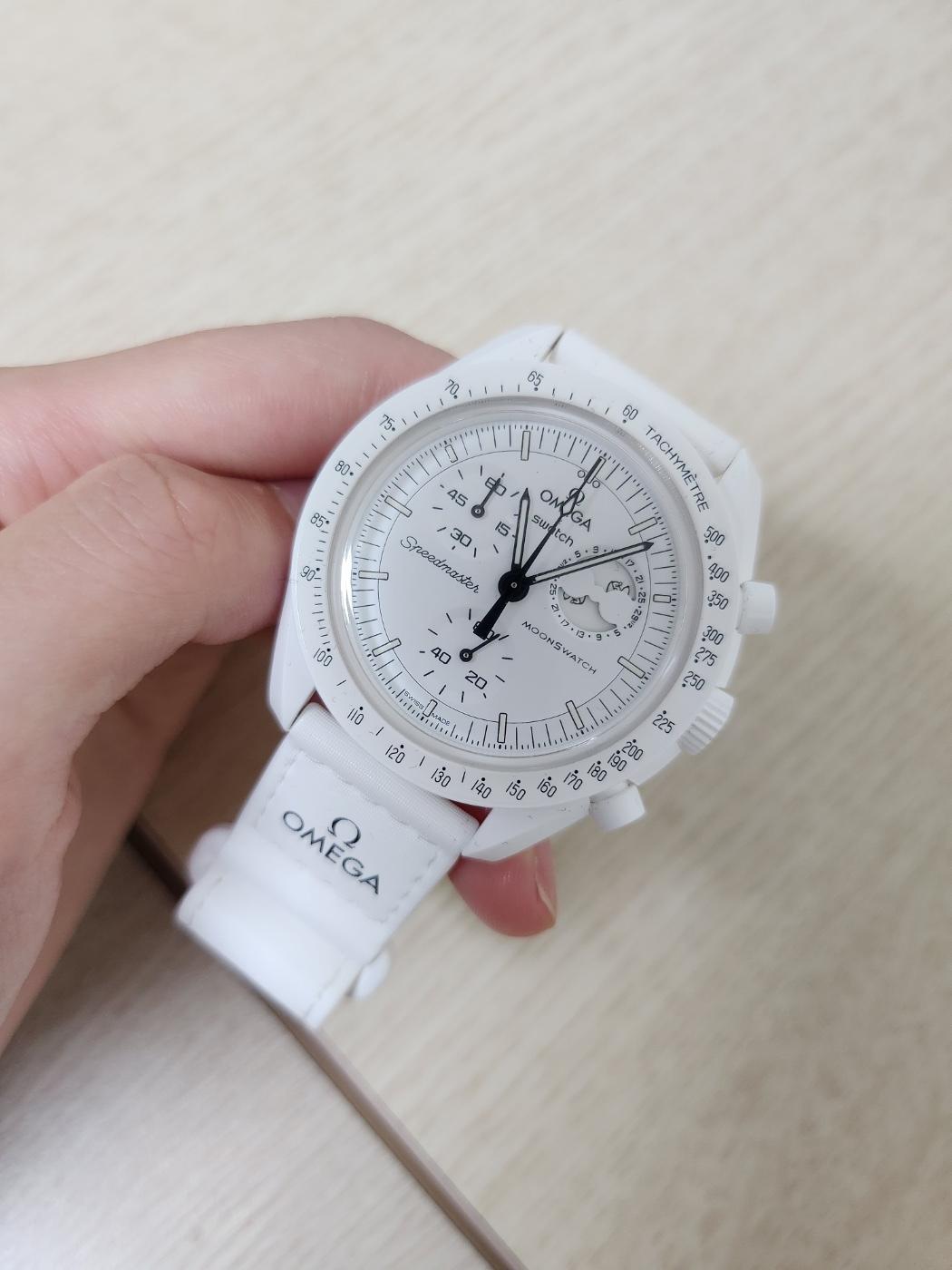 진심으로 다이얼 좀 보세요... 이 가격에 오메가 다이얼 그대로 구현한...하하하 문스와치 안티가 많은 걸로 알고 있는데 소재며 기능적인 면에서 그럼에도 불구하고 저는 위트있는 콜라보라고 생각해요. 또 스누피 에디션은 소장가치도 꽤나 높다고 생각합니다. 문워치와 나사 안전 마스코트 스누피 조합 어캐 참나요!크로노그래프도 기능도 있고 진짜 너무 재밌는 시계라고 생각합니다. 뒷면에 달도 귀엽고 스트랩 부분에 오메가, 스와치, 스피드마스터 다 쓰여있는 것도 쏘 간지... 문스와치 스누피 가격은 42만 3천원으로 일반 문스와치가 37만 1천원인 것에 비하면 가격이 5만원 정도 높아요. 스누피 개런티값인가요? 하하