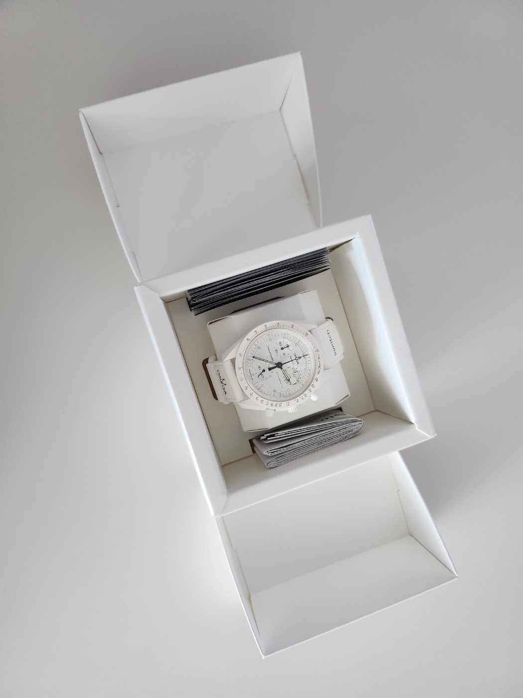 진짜 너무너무 신나서 직원 분이랑 나 드디어 샀다고 이제 안 와도 된다며 광광 거렸는데 지금 생각하니 민망하기 짝이 없네요..하하! 문스와치 스누피 화이트는 케이스도 화이트예요. 블랙은 케이스도 블랙이었거든요. 이 다음은 블랙과 화이트 비교입니다. 박스를 열어보면 나오는 사용설명서!! 아 기대가 됩니다.